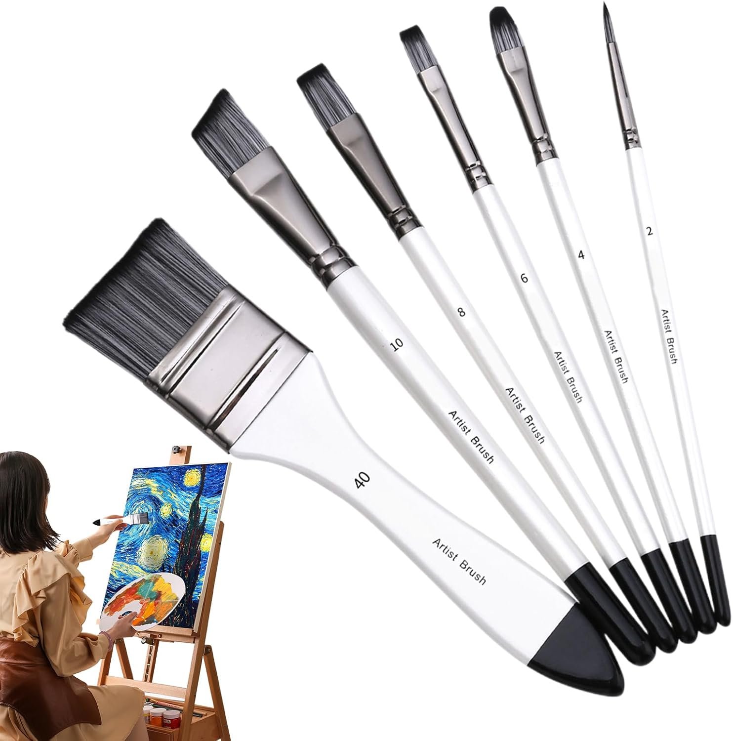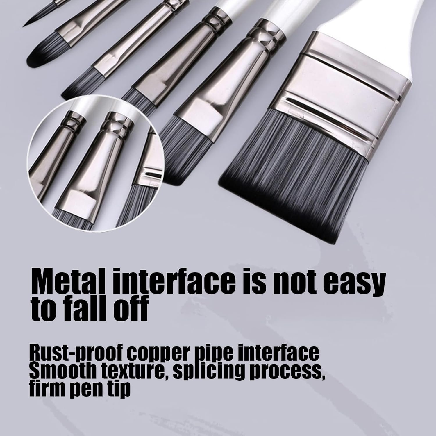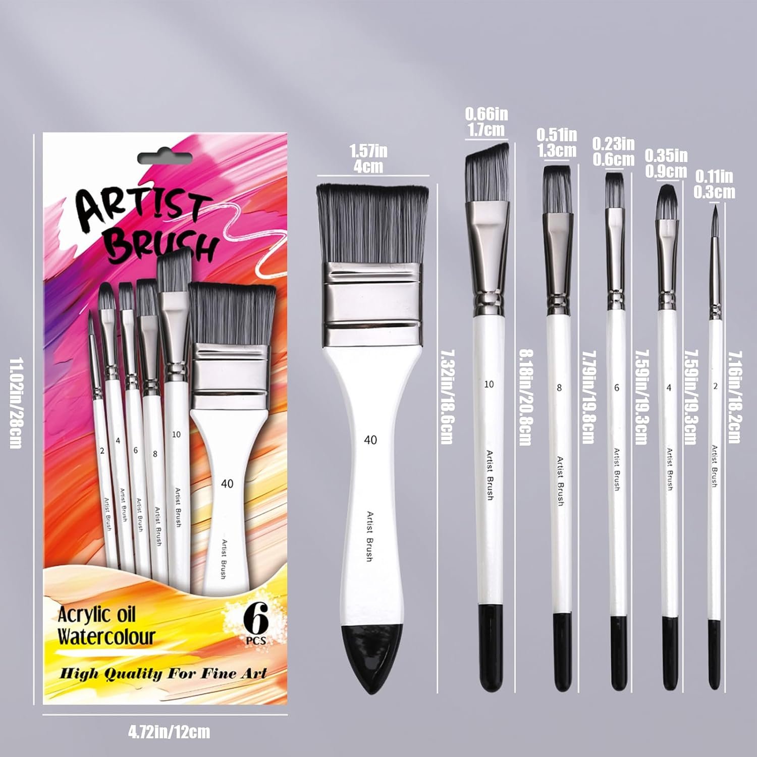 長寿命:このブラシセットは、柔らかく穏やかな持続を保証し、同時にその形状を保持し、楽しい精密な絵画を可能にします。ブラシヘッドのナイロンの毛は長寿命を提供しますが、堅牢であるがわずかなアルミニウムの基礎は錆びにくく、掃除が簡単ではありません