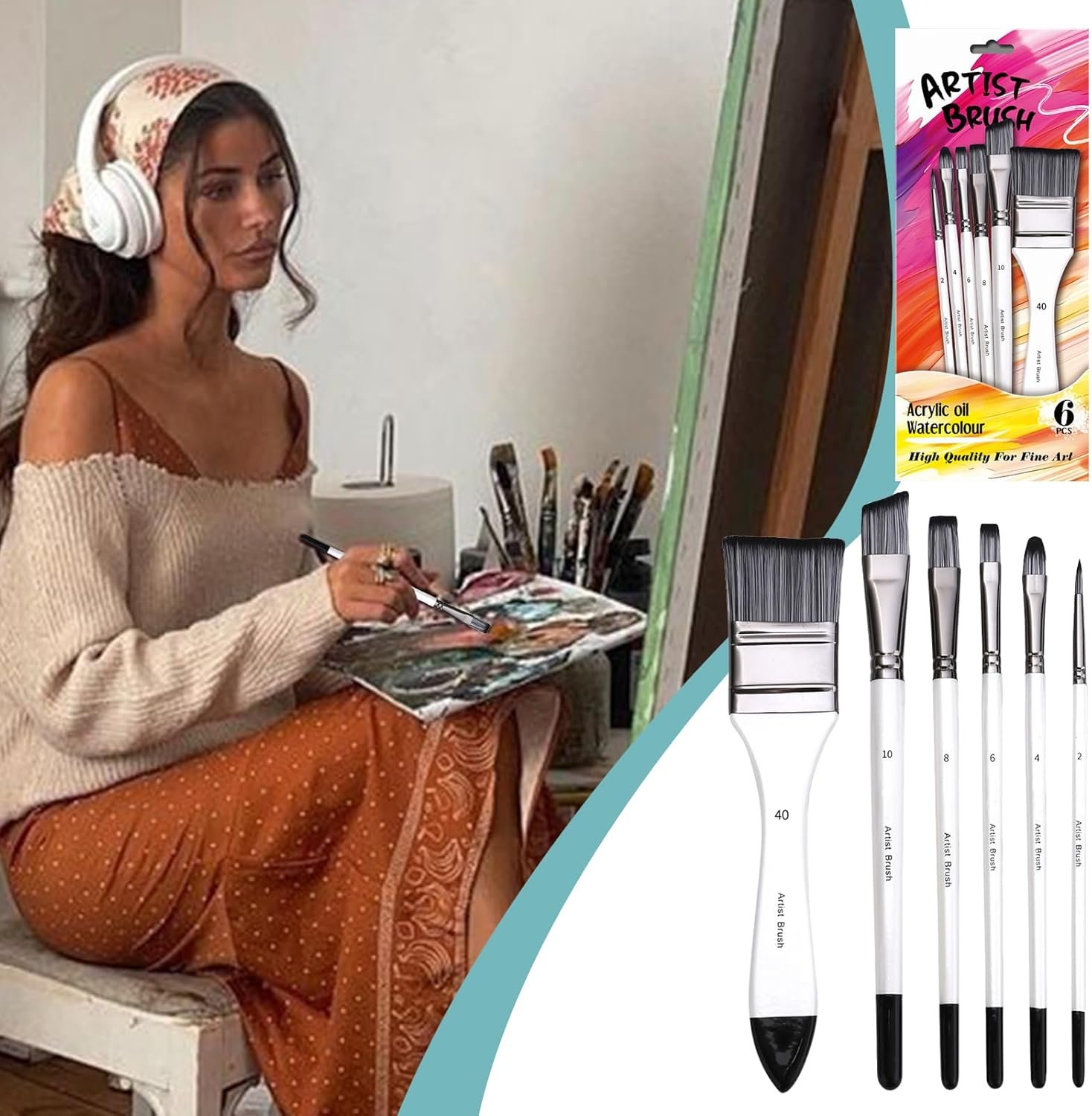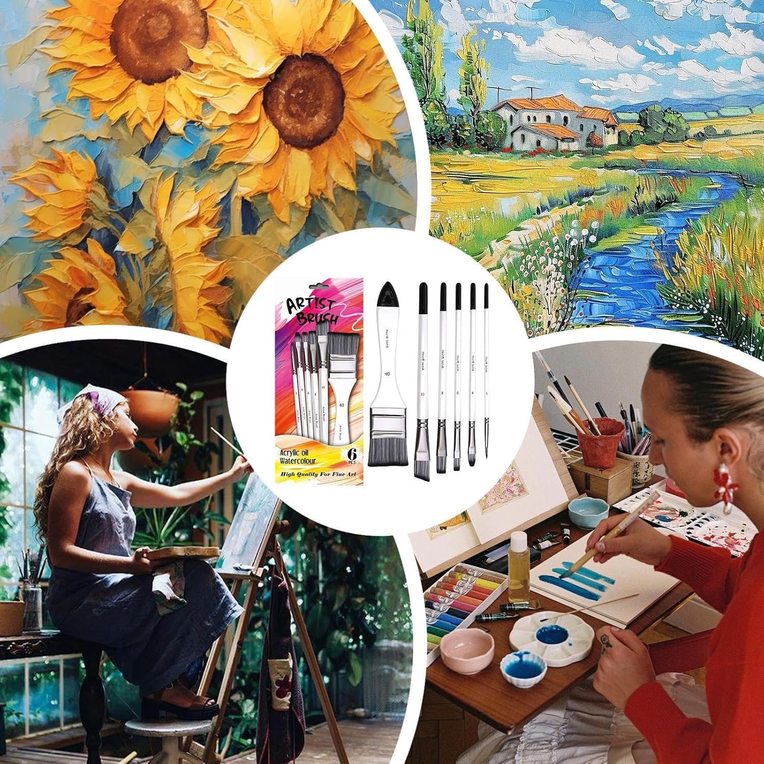ブラシセット:ブラシセットは、様々な塗装要件のために開発された様々なサイズと形状の6つのブラシで構成されています。 これらのブラシは専門的に製造されており、プロの画家や趣味の特別な画家を支援して、様々な絵画効果を簡単な方法で実現します
