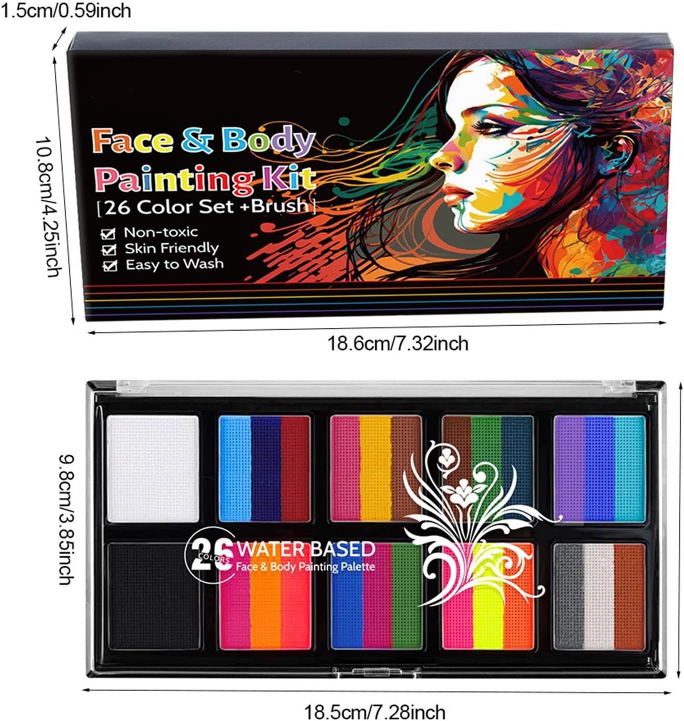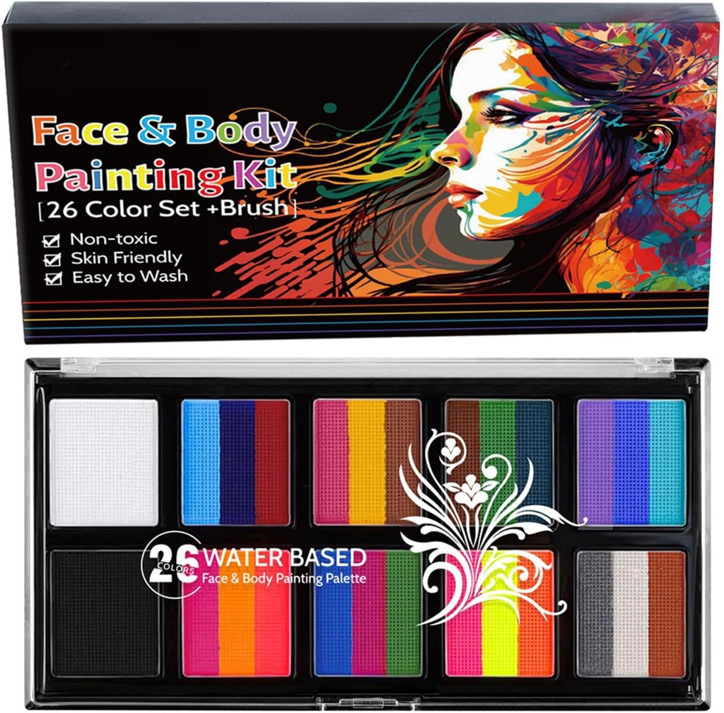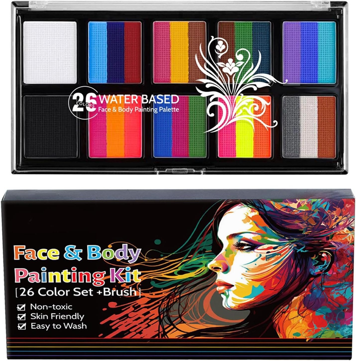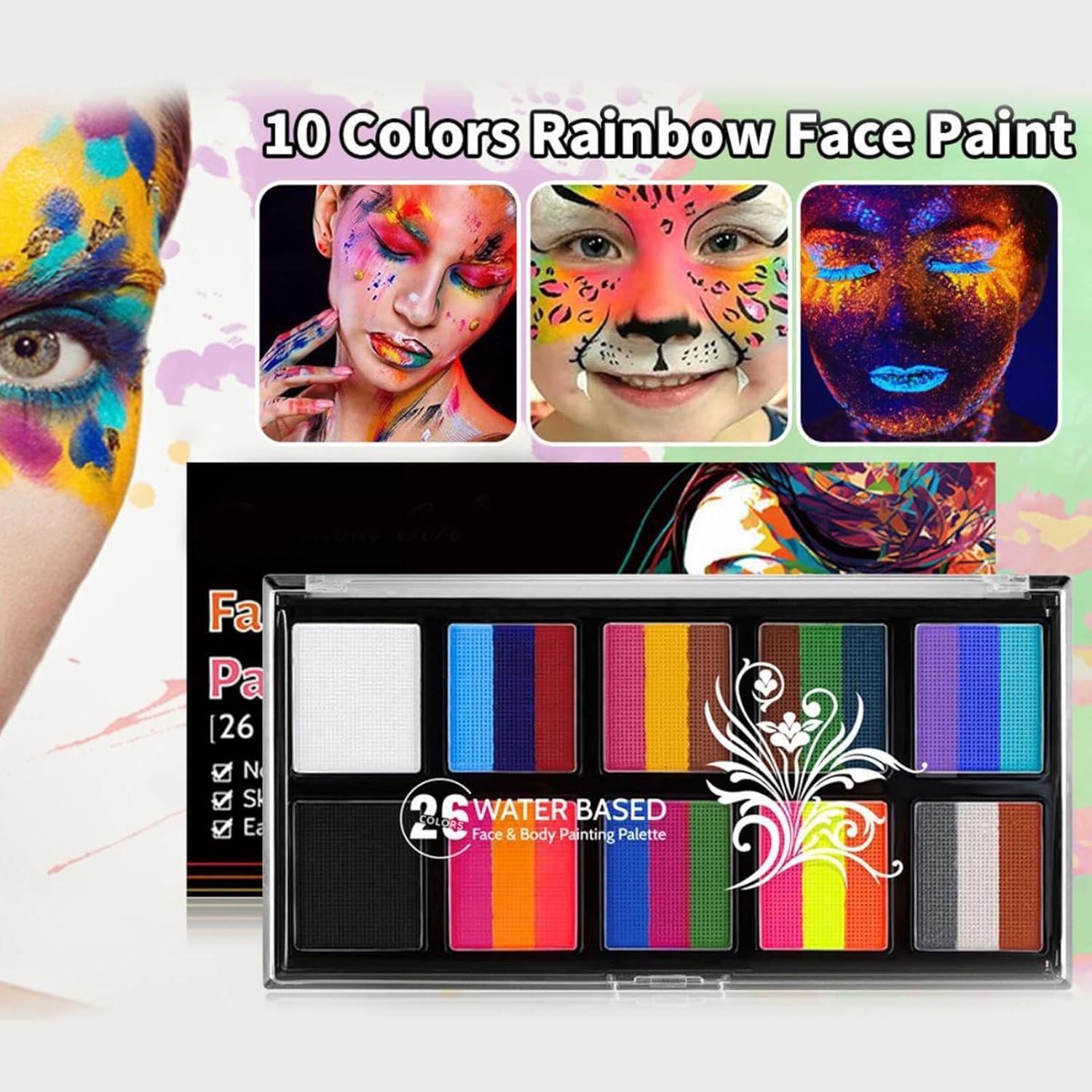 肌に穏やかに、すべての人にとって安全です:軽度の材料で、このフェイスペインティングパレットは安全で穏やかです。使用する前に、子供や大人に適した短い耐性テストを実行します。皆の肌が異なるため、肌の一部をテストする方が安全です。