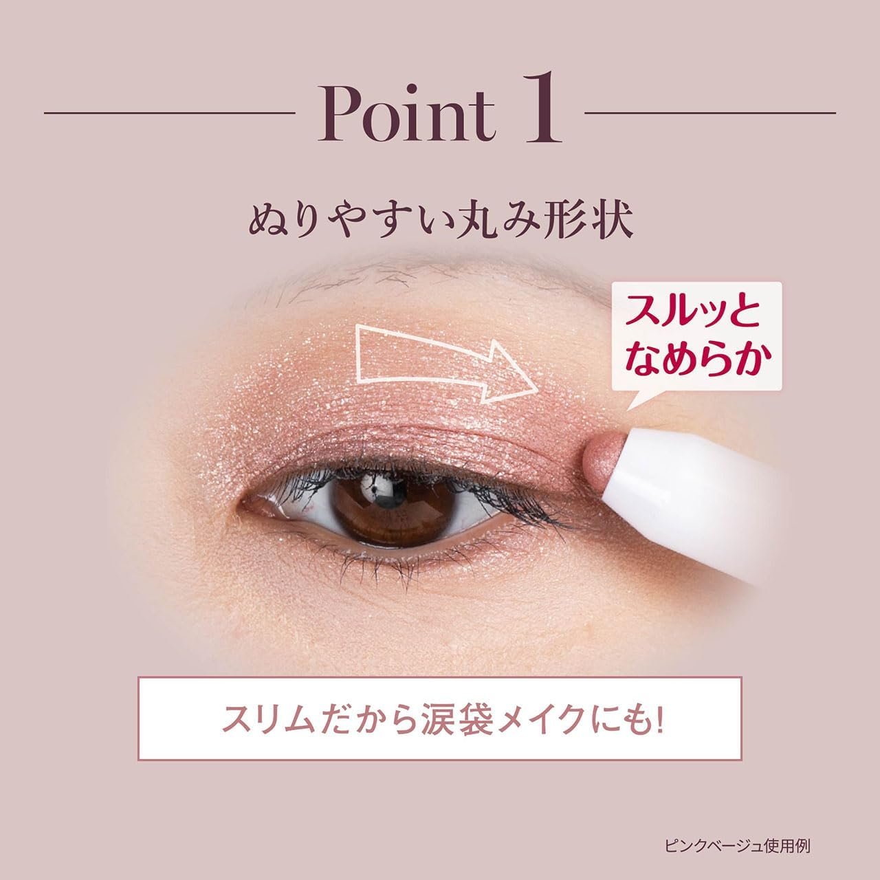 スリムな形状なので細部まで塗りやすいです。シワになりにくく、大人のまぶたに美しく映えるカラーです。 (くすんだルースパールを配合)