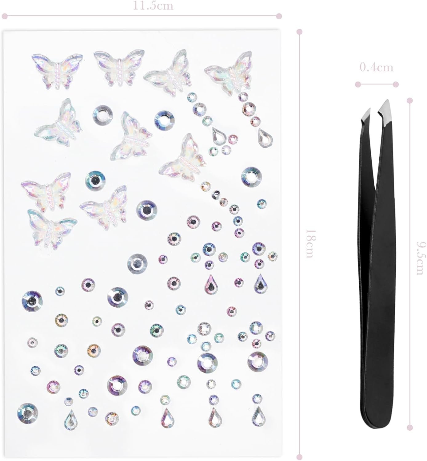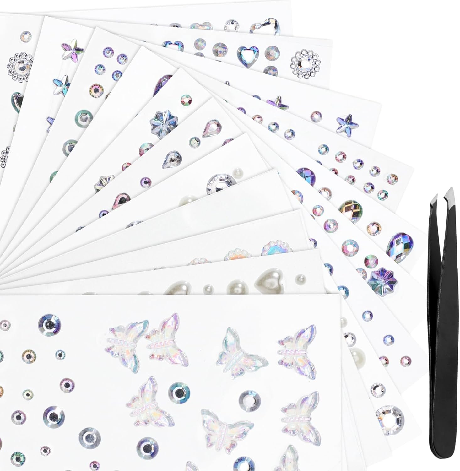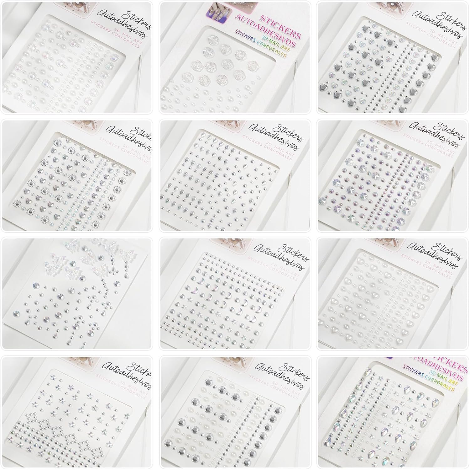 ラインストーンステッカー 12枚セット 3D キラキラ フェイスステッカー フェイスステッカー カラフル アイメイク ネイルパーツ ステージメイク 接着剤不要 貼れる 携帯電話デコレーション DIY ピンセット付き