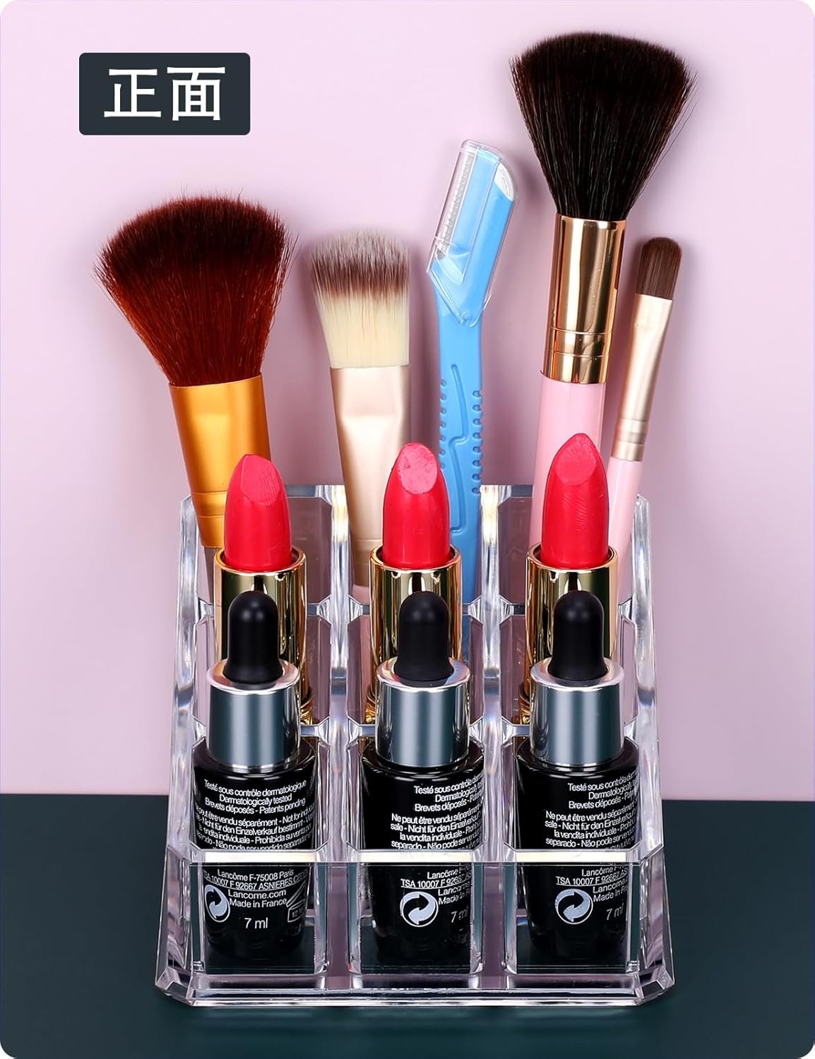 スペースを節約:絶妙でコンパクトなデザインは、9つの口紅または化粧品を保持できます。また、スキンケア製品、ジュエリー、マニキュア、美容ツールを保管および展示するためにも使用でき、完璧なディスプレイです
