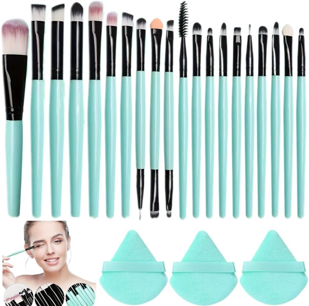 ブラシ材料:ナイロンブリスル、木でできたハンドル。数量:23%/セット。製品タイプ:20pcsメイクアップブラシ + 3pcsパウダーパフ