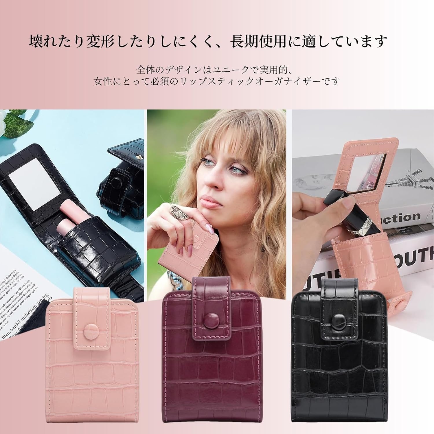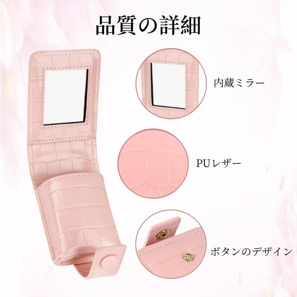 Florperry Lipstick Case、ミニリップスティックバッグ、リップケース、リップグロスポーチ、トリンコースケース、メイクアップバッグ、ミラー、女性用、メイクアップポーチ、リップストレージ、メイクポーチ、ミラーリップストレージケース、ピンク、(1)