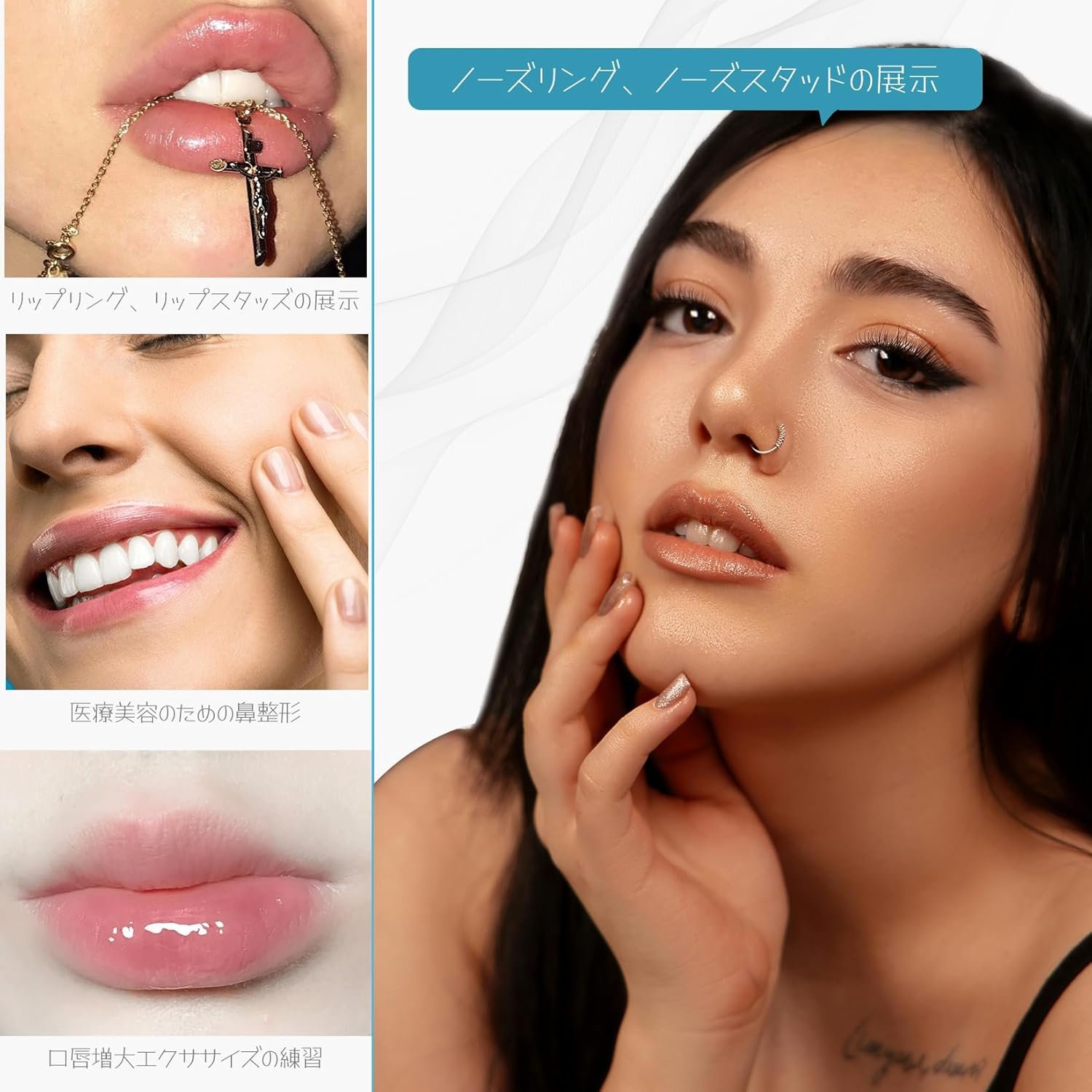 [VNMCRY] リップカラーのリップスタイルとシリコンノーズモデル薄いリップスタイルノーズリングノーズスタッドリップスタッドリップメイクアップ練習柔軟なソフトノーズモデルセット再利用可能なアイボリーホワイト