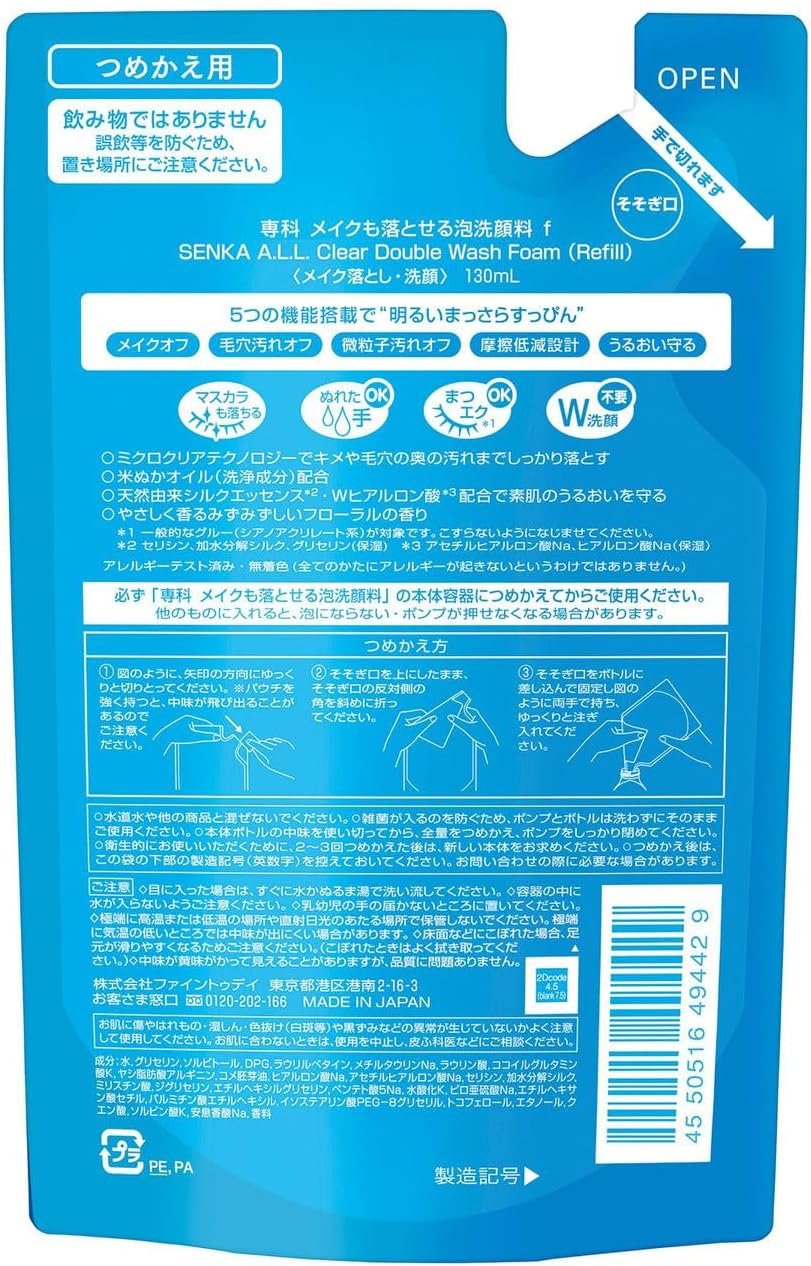 Senka Makeup Remover Faaming Facial Cleanser、Makeup Remover&Facial Cleansing、Main Unit 5.3 fl oz + refill 4.1 fl oz(130 ml)セット、メイク、毛穴、汚れ、マスカラ、濡れた手、まぶたEk、w