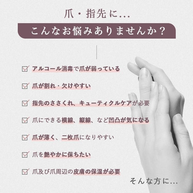9種類の植物油と2種類のケラチン(ケラチンと加水分解されたケラチン /すべての保湿)で配合され、乾燥によって引き起こされる損傷を修復し、強く、美しく健康的な指先につながりました。ジェルのようなオイルは簡単に滴下できず、2種類のふわふわした香りは静かに包みます。リップグロスのようなかわいいパッケージと旅行に最適です。植物のオイルベースの爪の修理と爪と甘い肌が爪のひび割れ、欠け、剥がれ、健康的で光沢のある仕上げを維持するのを防ぎ、最も甘い肌を防ぎます。グリコール酸含有量0.00700%