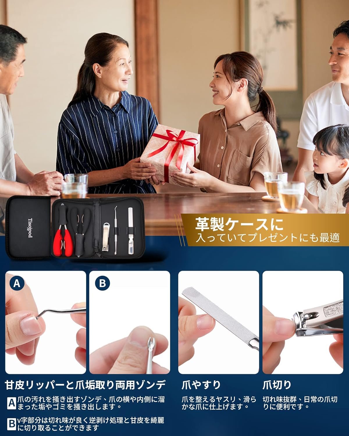 winding爪のための完璧なネイルクリッパーwaind私たちの製品は、曲がりくねった爪のためのネイルクリッパーに最適です。 ZondeにはSweetskin RipperとNail Scum Removerの両方があり、ネイルファイルは粗くて細かいので、爪の状態に応じて使用できます。ネイルクリッパーは優れたシャープネスであり、毎日のネイルクリッピングに便利です。軽い力で爪を簡単に切ることができます。持ち運びが簡単な豪華な革のケースが付属しています。あなた自身、家族、親友、高齢者などのための完璧な誕生日やクリスマスプレゼント