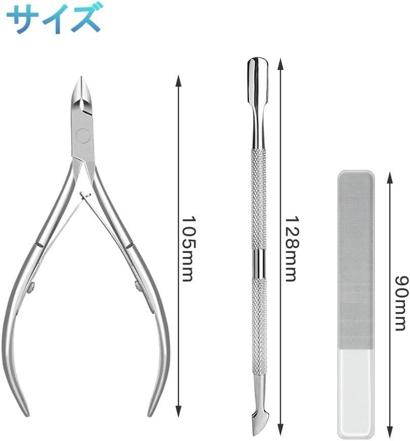 YFFSFDCキューティクルケアツール、3のセット、キューティクルニッパー、キューティクルプッシャー、ネイルファイル、ガラスマニキュア、ネイルニッパー、プッシャー、ネイルスカッファ、キューティクルキューティクル処理ツール(シルバーA)