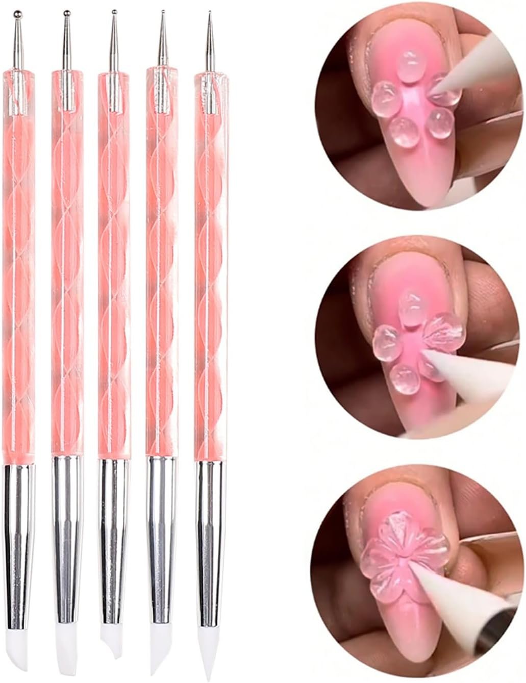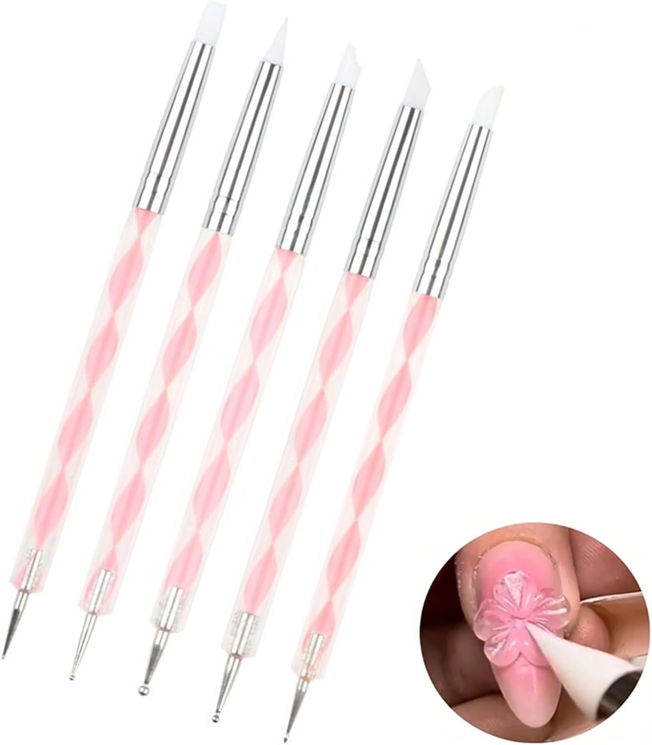 爪ブラシ、シリコンブラシ、ドットペン、5のセット、セルフネイル、シンプル、ピンク、簡単、シンプル、耐久性、簡単、アート、自宅、ドットアート、ドットスティック、マニキュアツール、セルフネイル