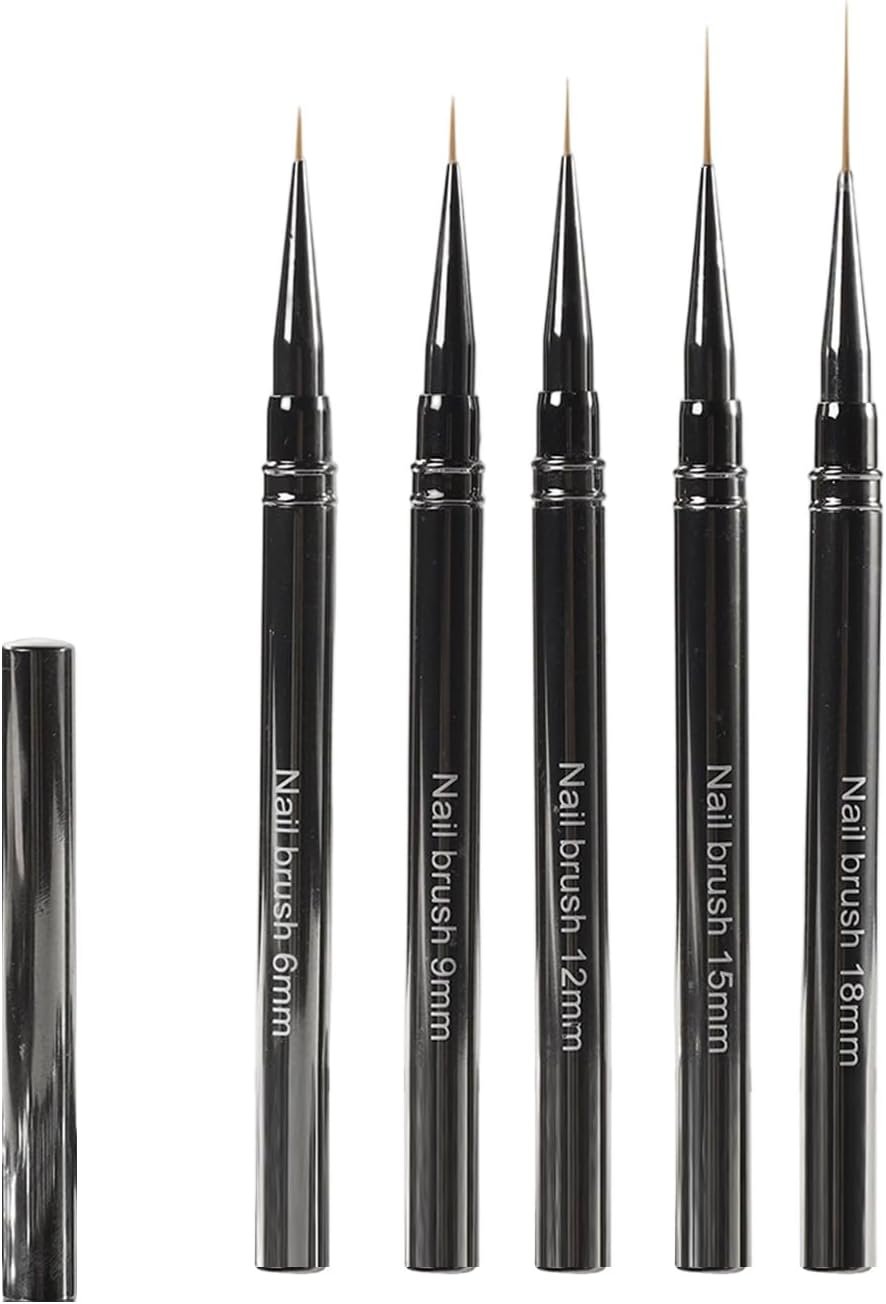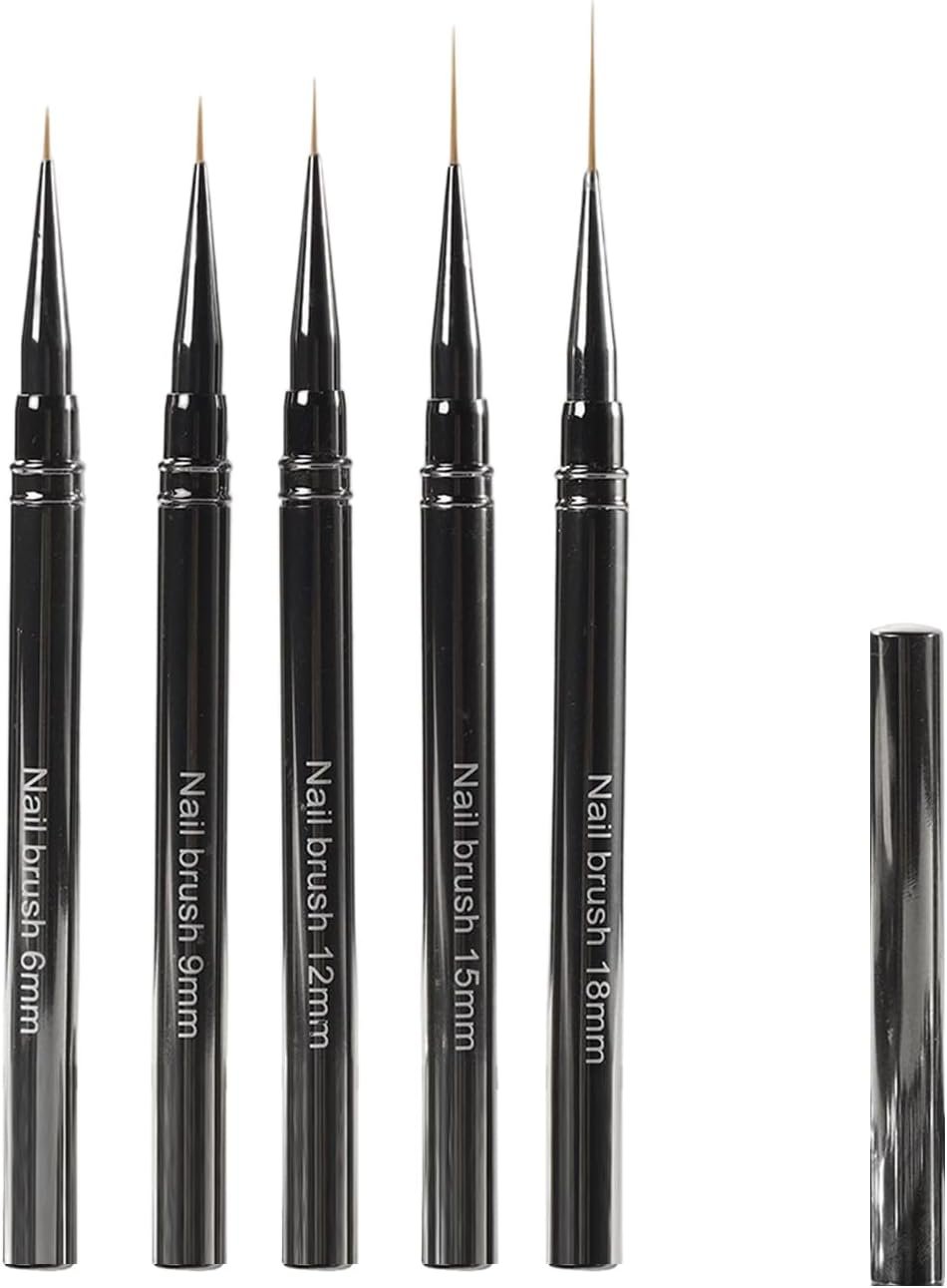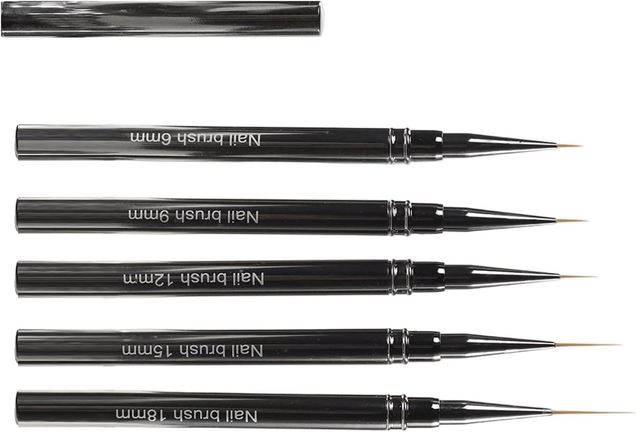 プロフェッショナルネイルアートブラシ、細いネイルアートブラシ5本の異なるサイズのネイルブラシセット、ネイルライナーブラシサイズ:6/9/12/15/18m.mm。