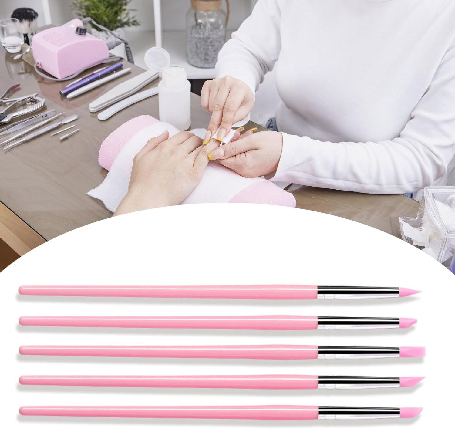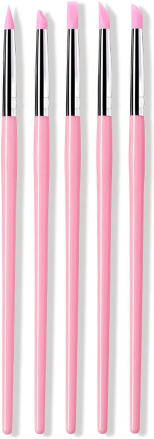 5PCSシリコンネイルジェルネイルとセラミッククラフト用のアートブラシソフトシリコーンチップモデリングブラシネイルアートジェルアクセサリー