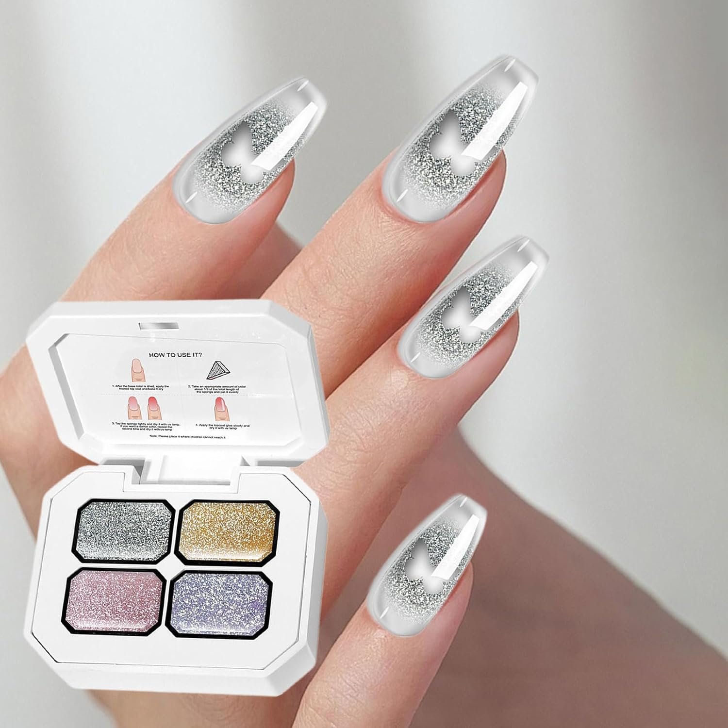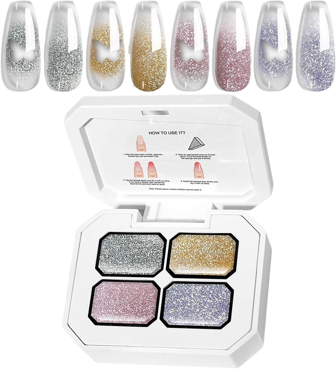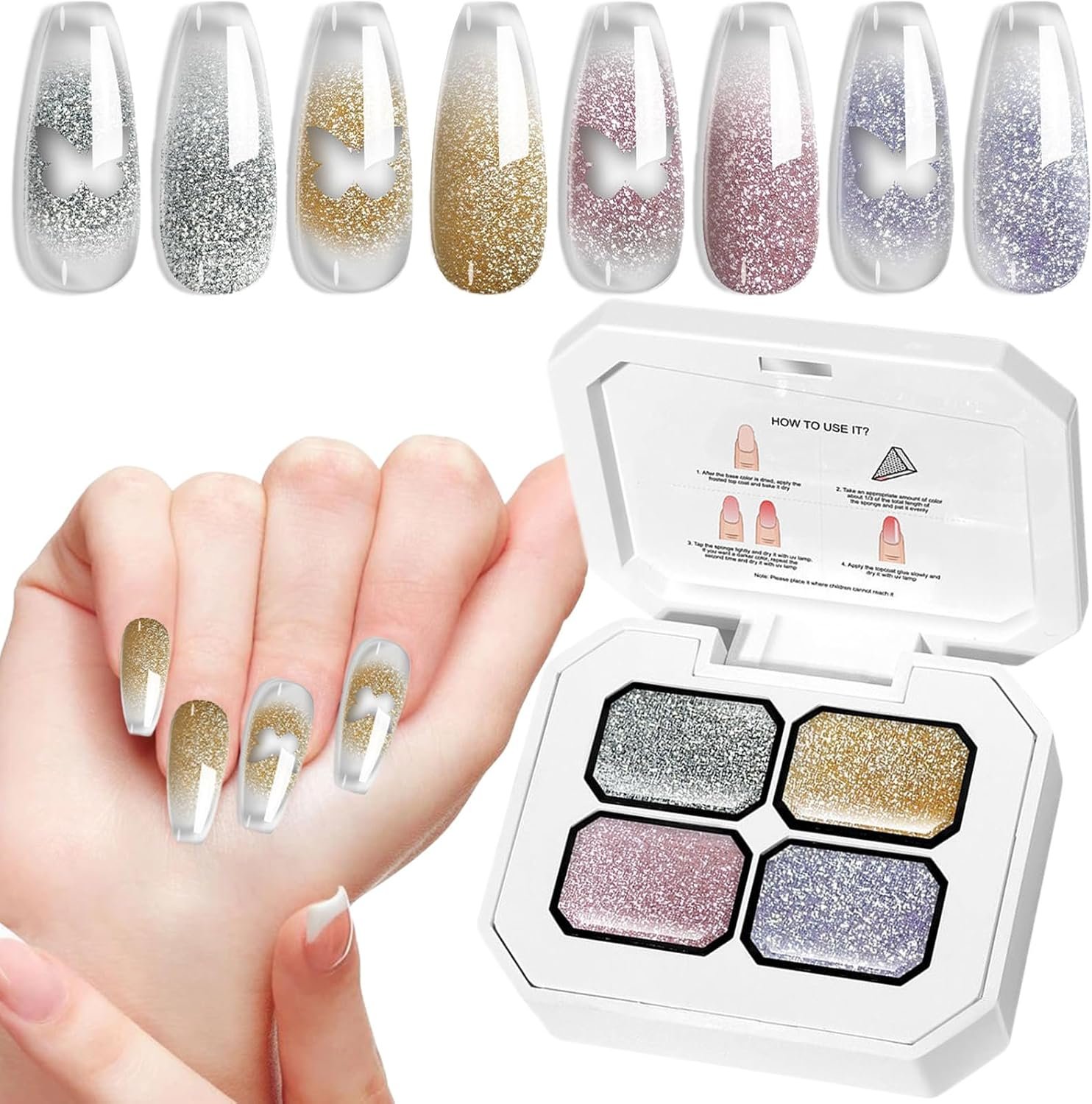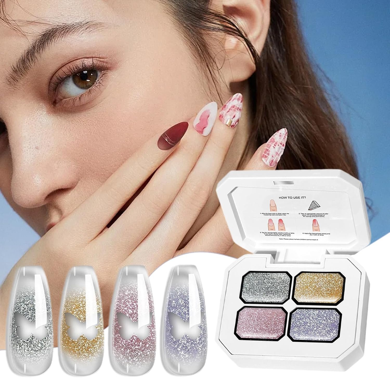 透明感ナチュラル仕上げ:4 分割グラデーションパレットによりソフトマットな色移行を実現。クールからウォームトーンまで揃った透明感のあるナチュラル発色が、重ね塗りジェルネイルで調節可能な立体感を作り出します