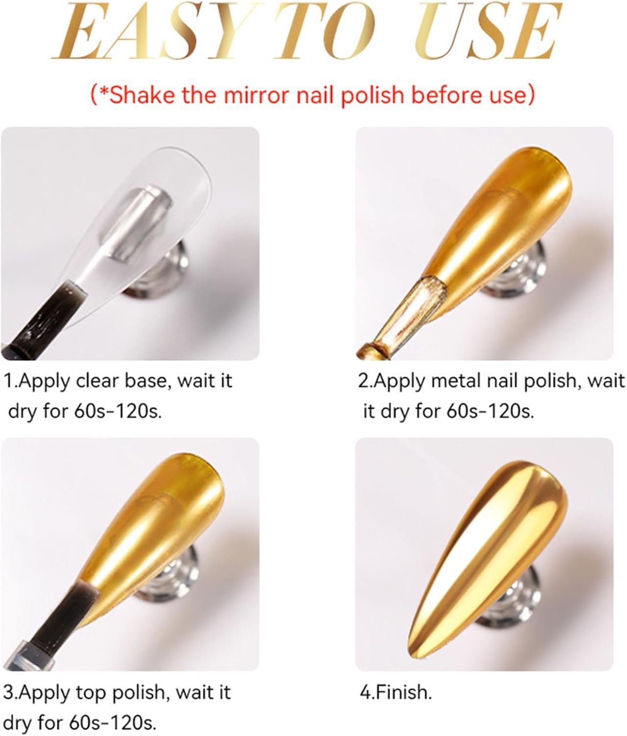 便利なアプリケーション:クイックドライデザインにより、この製品は完璧な鏡仕上げを形成しながら簡単なアプリケーションを保証し、プロのツールやベーキングプロセスなしで自宅で見事なネイルアートを作成できるようになります