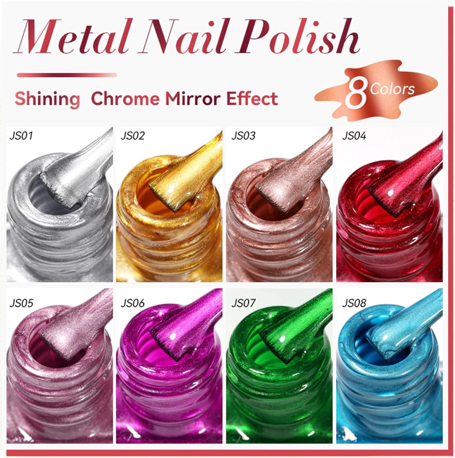 ジェルマニキュア – クイック乾燥フォーミュラ、ミラーエフェクトネイル、女性ネイルキットギフト| 8色、光沢のある仕上げ、長持ちする摩耗、サロン、結婚式の休日、またはホームマニキュアに最適に適用できます