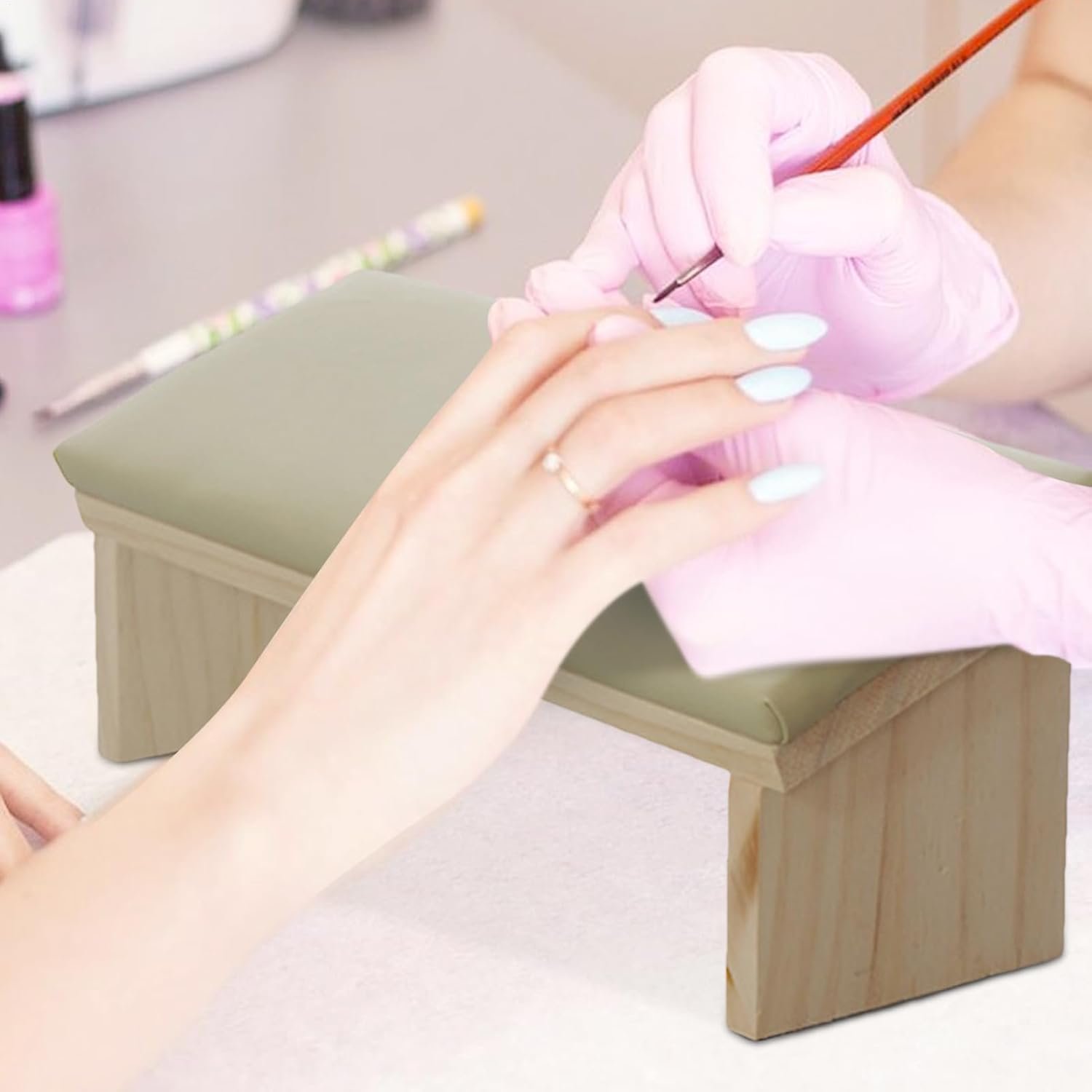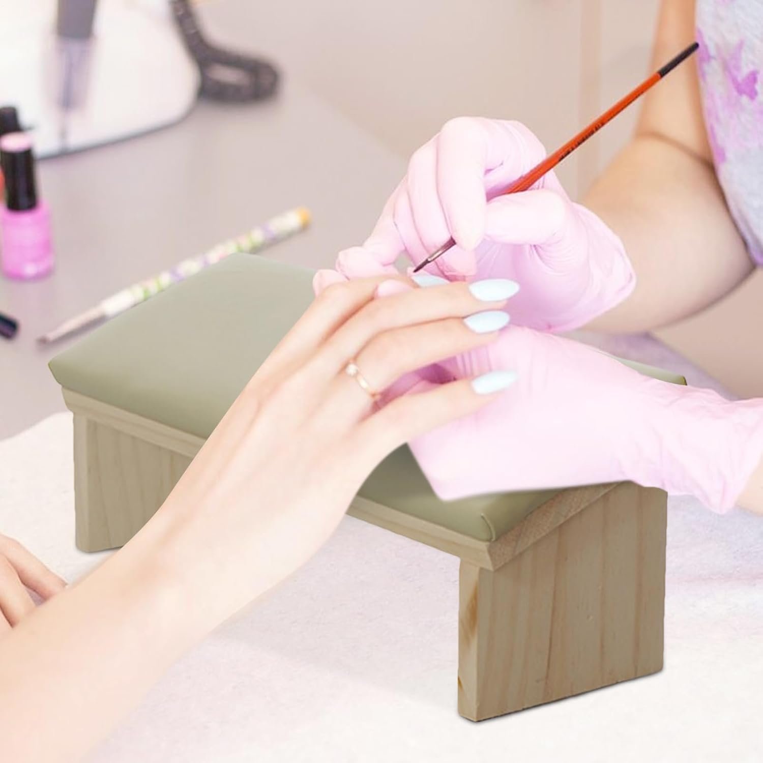 ネイルのアームレスト技術 -人間工学に基づいたベベルデザインマニキュア木製pu | | 革新的なマニカルストゥルディネイルアートアクセサリー、多機能の快適なネイルアートスタンドレストレストネイルサロン