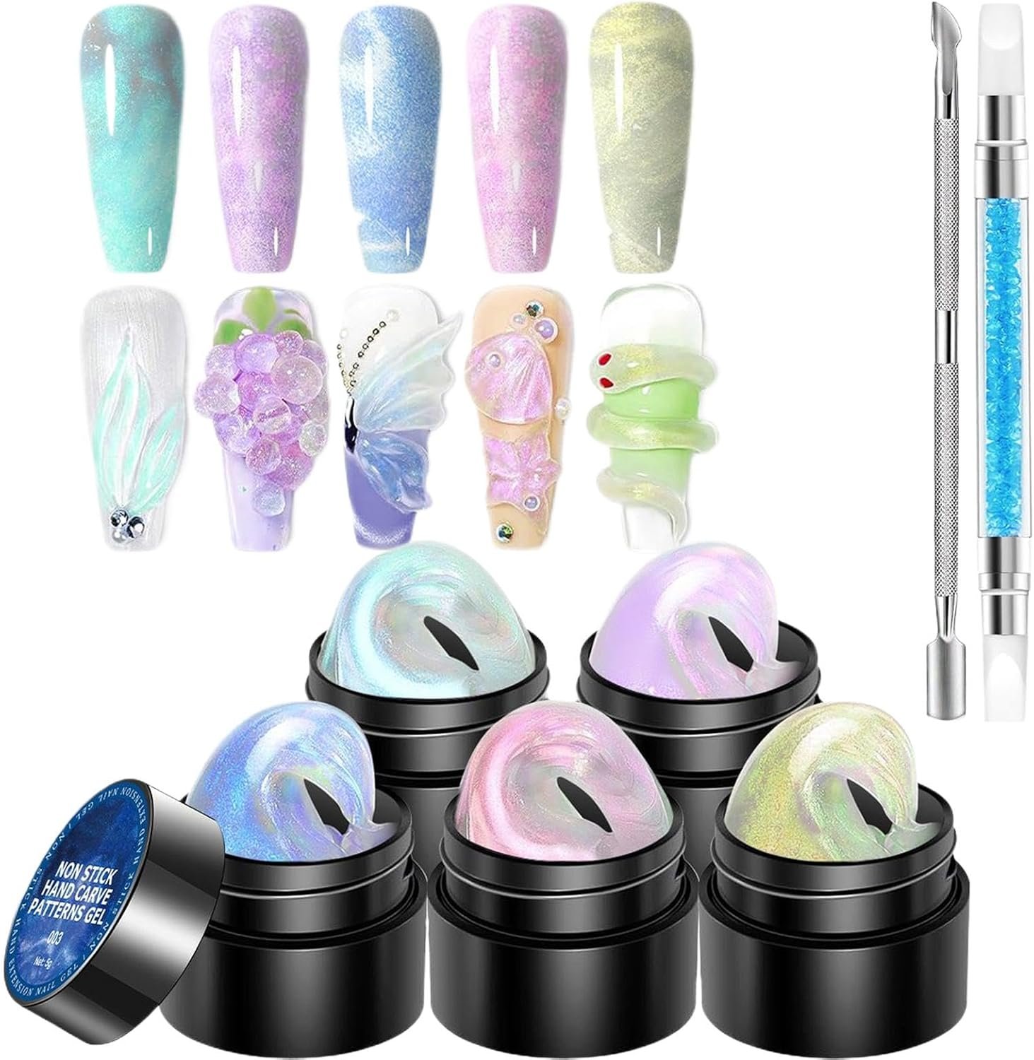 爪の3D 成形ジェル、爪の成形ジェル | 5色の釘の固体ビルダーの彫刻ゲル、マニキュアセットホームサロンカービングモールディングビルディングペインティング用のノンスティック、 UV/LEDを浸す