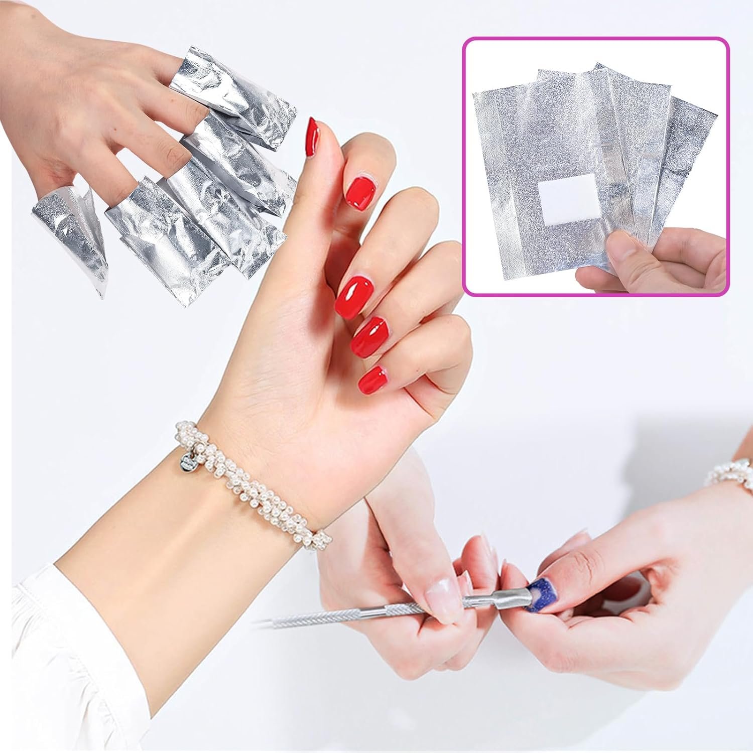 cent便利で使いやすい操作が簡単で、綿にリムーバー(またはアセトン)を浸し、ジェルコーティングされた爪の上に置き、指をホイルで包みます。マニキュアは簡単に取り外すことができます(注:アセトンは個別に購入する必要があります。)