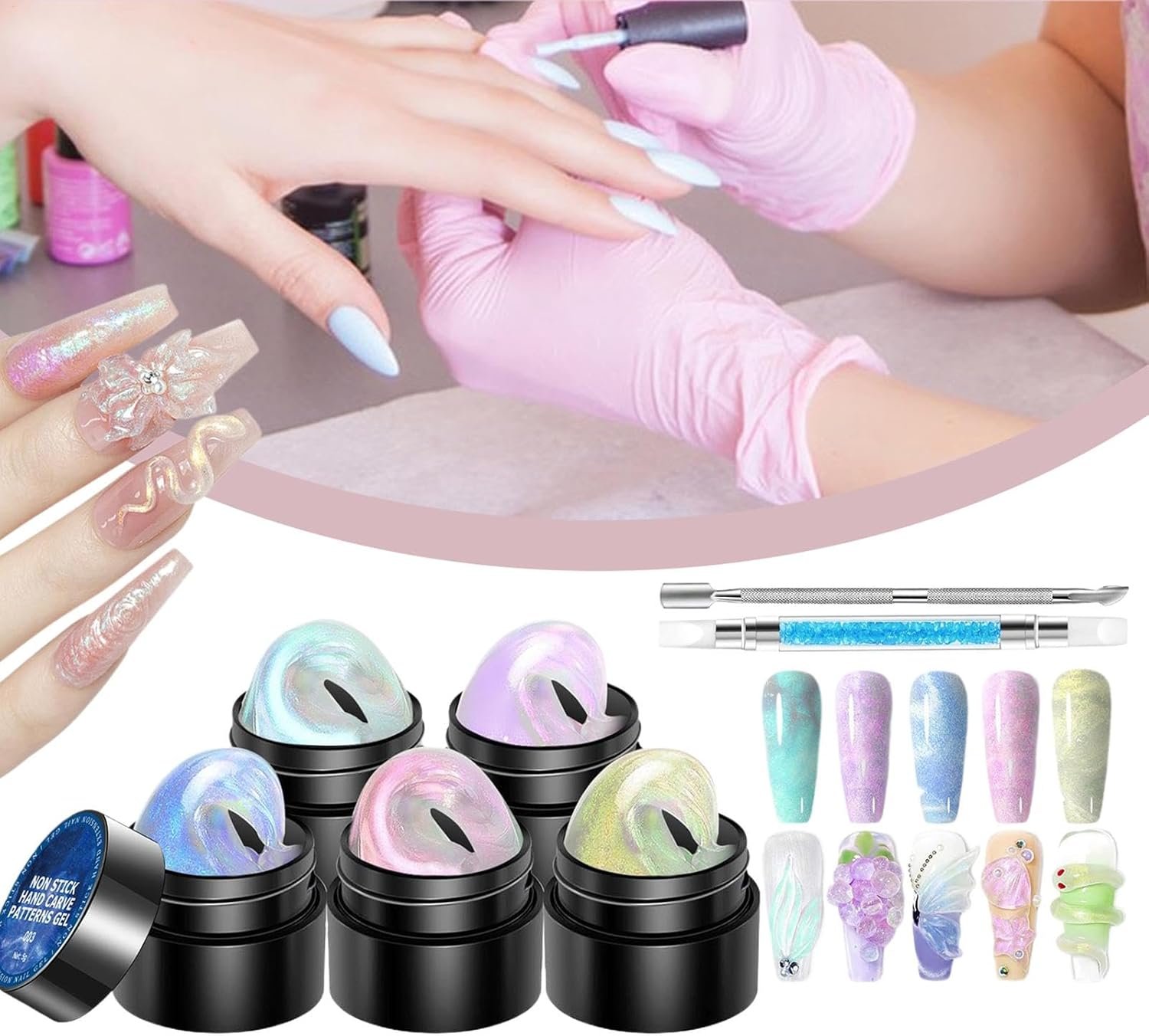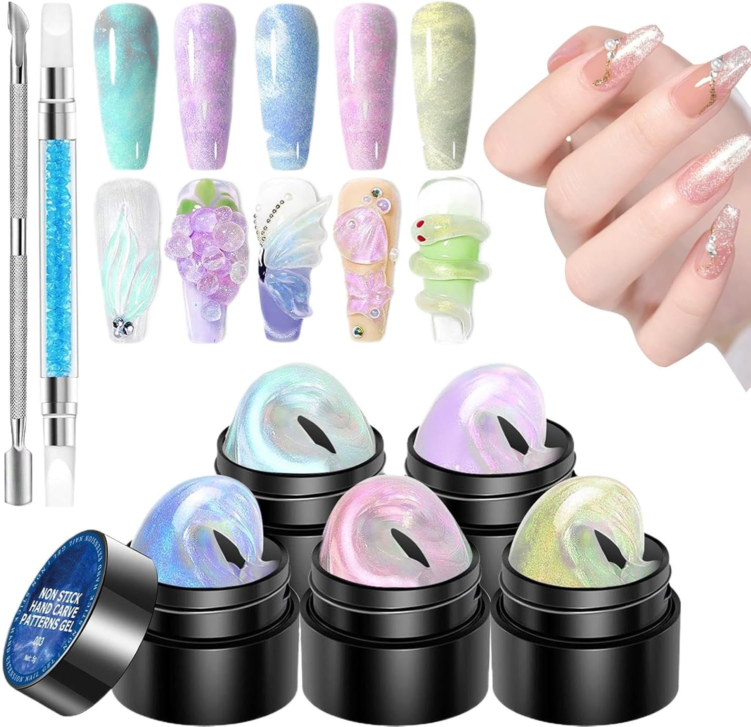 3D ネイルジェル、ネイル用の 3D成形ジェル -5色固体ビルダーネイルデザイン彫刻ゲル| 成形、建物、絵画、宝石の装飾用の彫刻ペン付きのノンスティックマニキュアセット