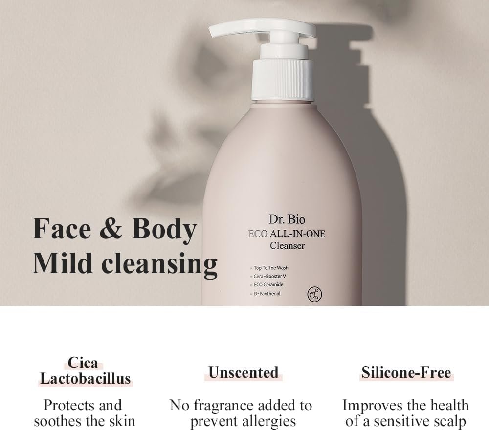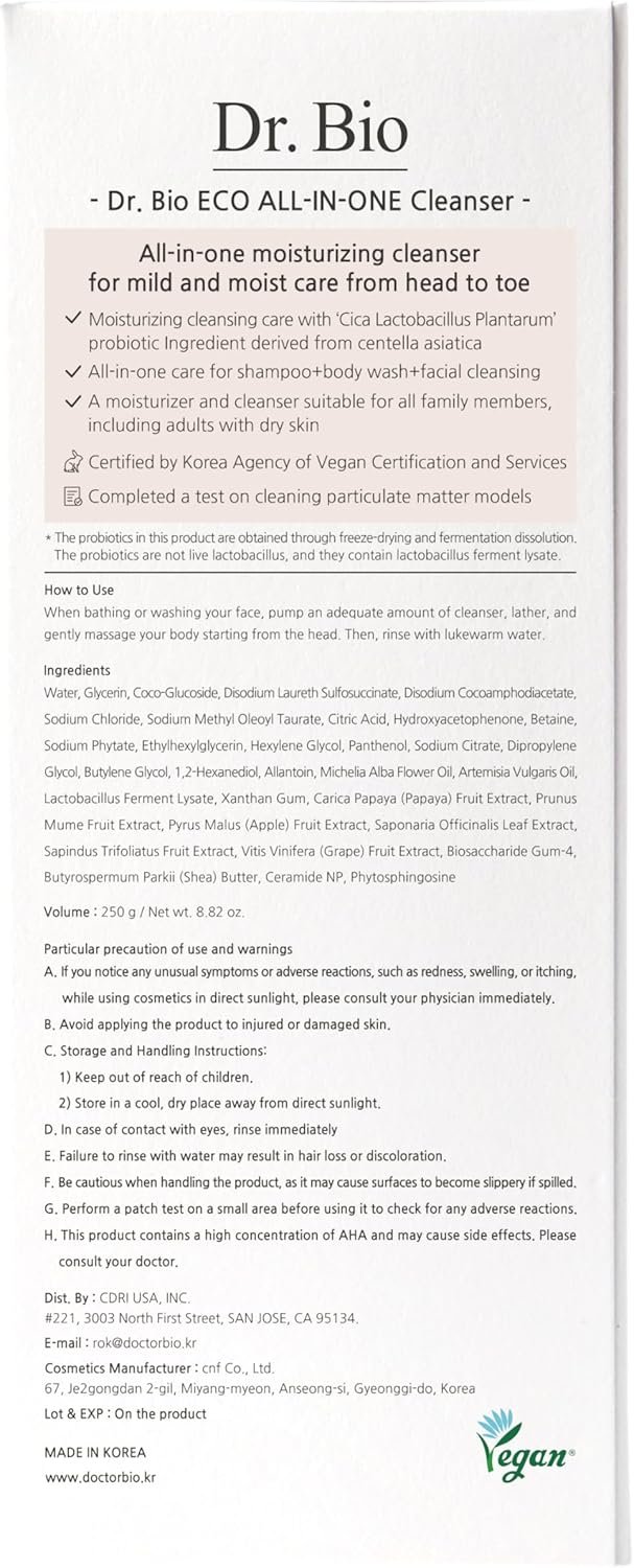 エコオールインワンクレンザー| 8.5 fl oz(250 ml)乾燥肌から脂性肌への保湿フェイスとボディウォッシュ|フレグランスフリーポアクレンジング| Natural Face&Body Wash Korean Skin Care製品