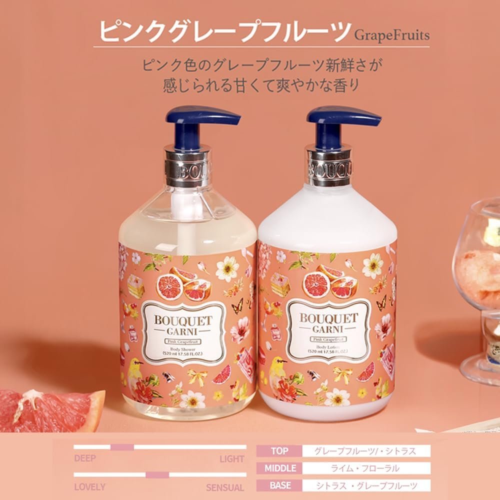 ブーケガルニボディシャワー、ピンクグレープフルーツの香り、16.9 fl oz(500 ml)、韓国の美しさ、ボディケア、植物保湿材料、リラックス、シャワー、保湿、スキンケア