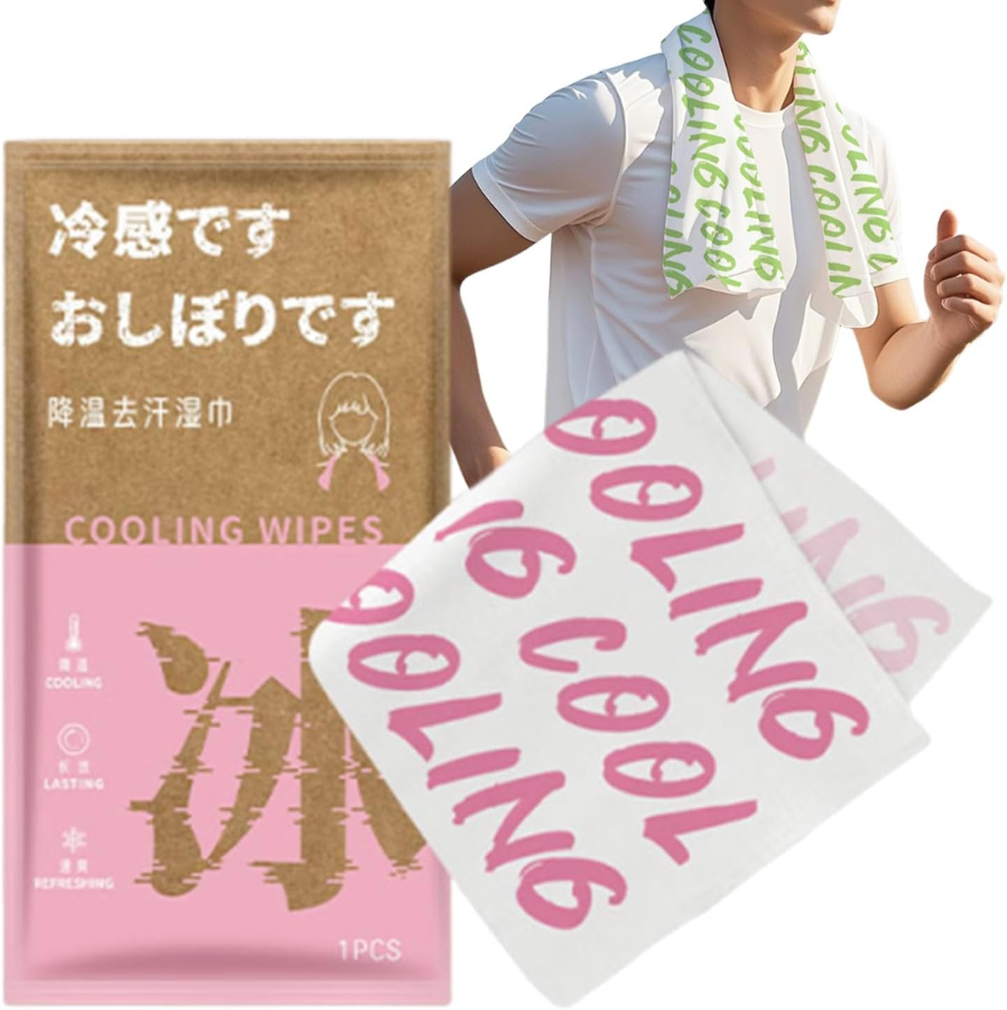 肌に優しい:すすぎ不要の冷却ワイプ。不織布製で、完璧な汗吸収と急速な水分蒸発を提供し、肌を爽やかでドライで快適に保ちます。