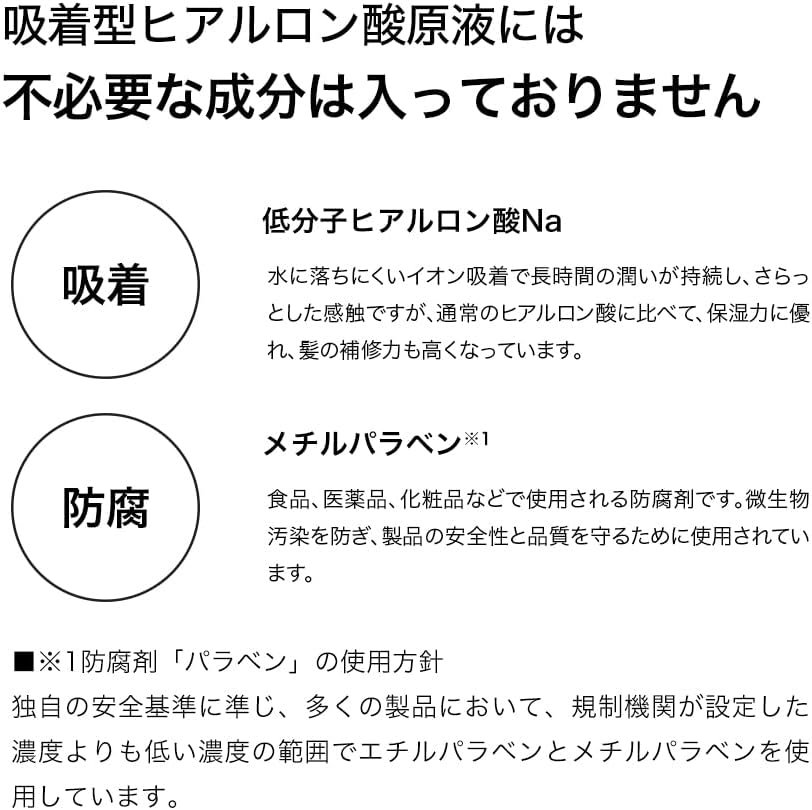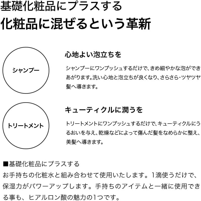 滑らかな感触を持っていますが、保湿やヴィスコの弾力性など、ヒアルロン酸の特性と、洗った後でも流出しない肌と髪に付着する能力の両方を達成します。