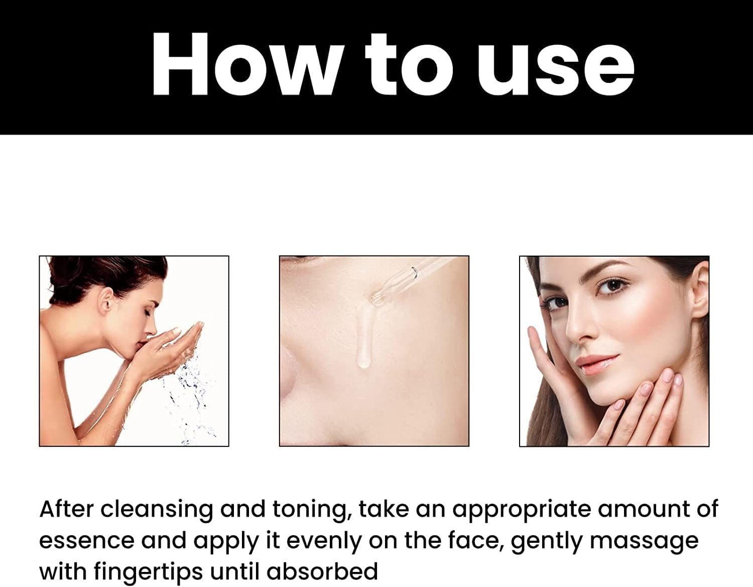 2.きれいな手の手のひらで2〜3滴を削除し、指先を使用して、完全に吸収されるまで顔と首をマッサージします。