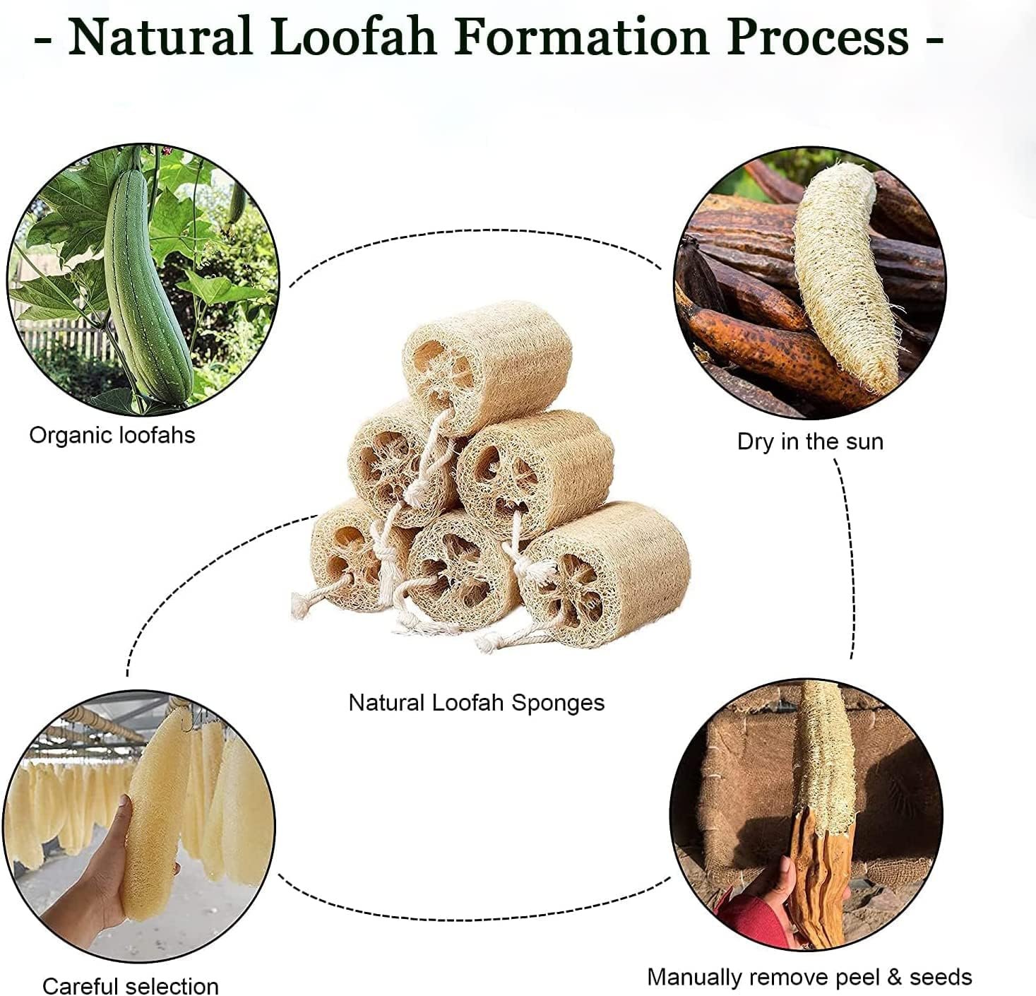 Adesugata 6PCS天然ルーファースポンジシャワーボールオーガニックルーファセグメントエクスフォリエーターバスタブルーファボディスクラブバックフェイシャルスキンケア