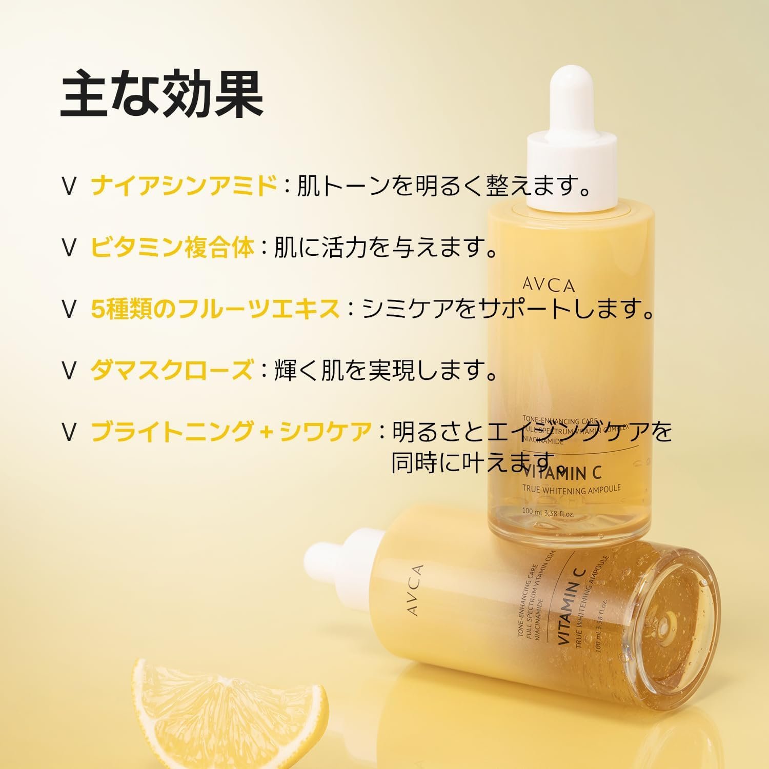 AVCAトゥルーブライトニングビタミンC顔面血清100ml-ビタミンCで処方された皮膚の傷とくすみの顔面血清用