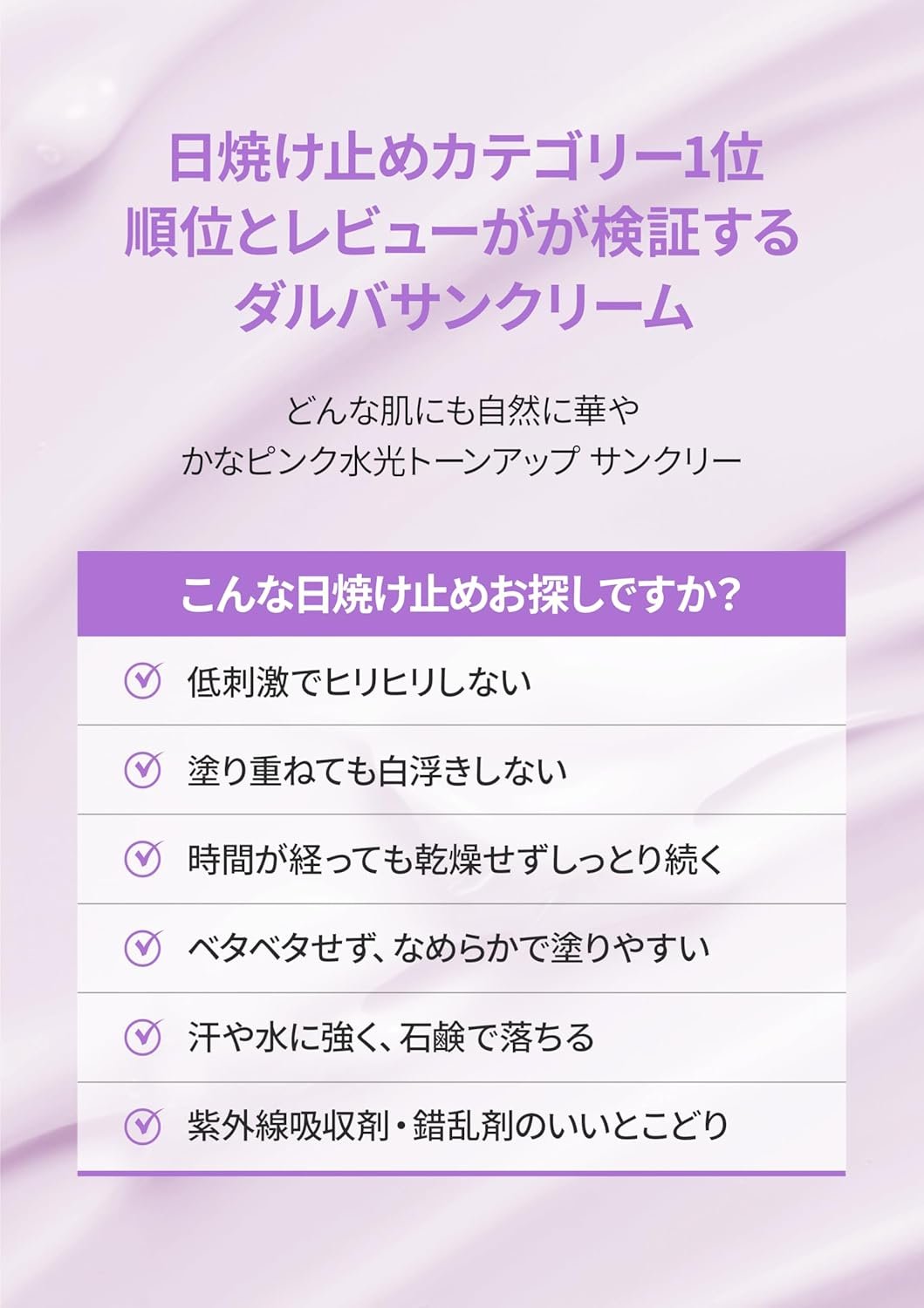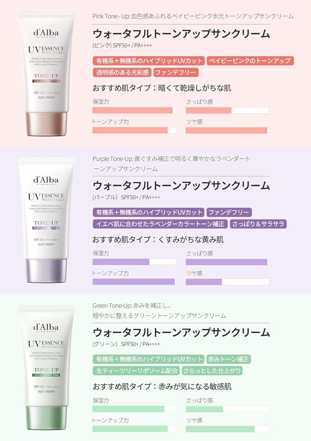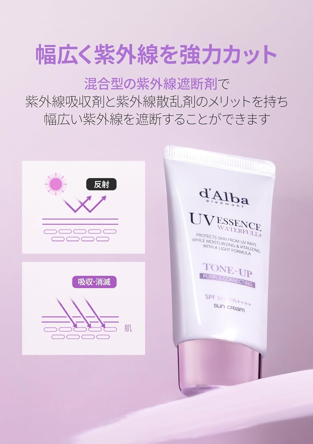 D’ALBA SPF 50+/PA ++++トーンアップ、サンクリームパープル、1.7 FL OZ(50 mL)、UVメイクベース、透明性、鈍い肌、UV保護、日焼け止め、顔全体、敏感肌、乾燥肌、低アレルギー性、