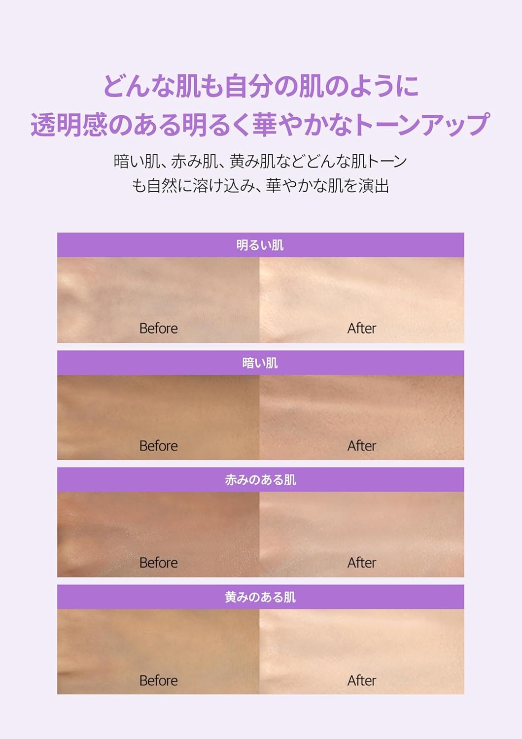 【トーンアップlight鈍さを覆う日焼け止めの軽い紫色のトーン。自然で魅力的なトーン仕上げを与えます。メイクアップベースとしても使用できます。基礎の前に使用します
