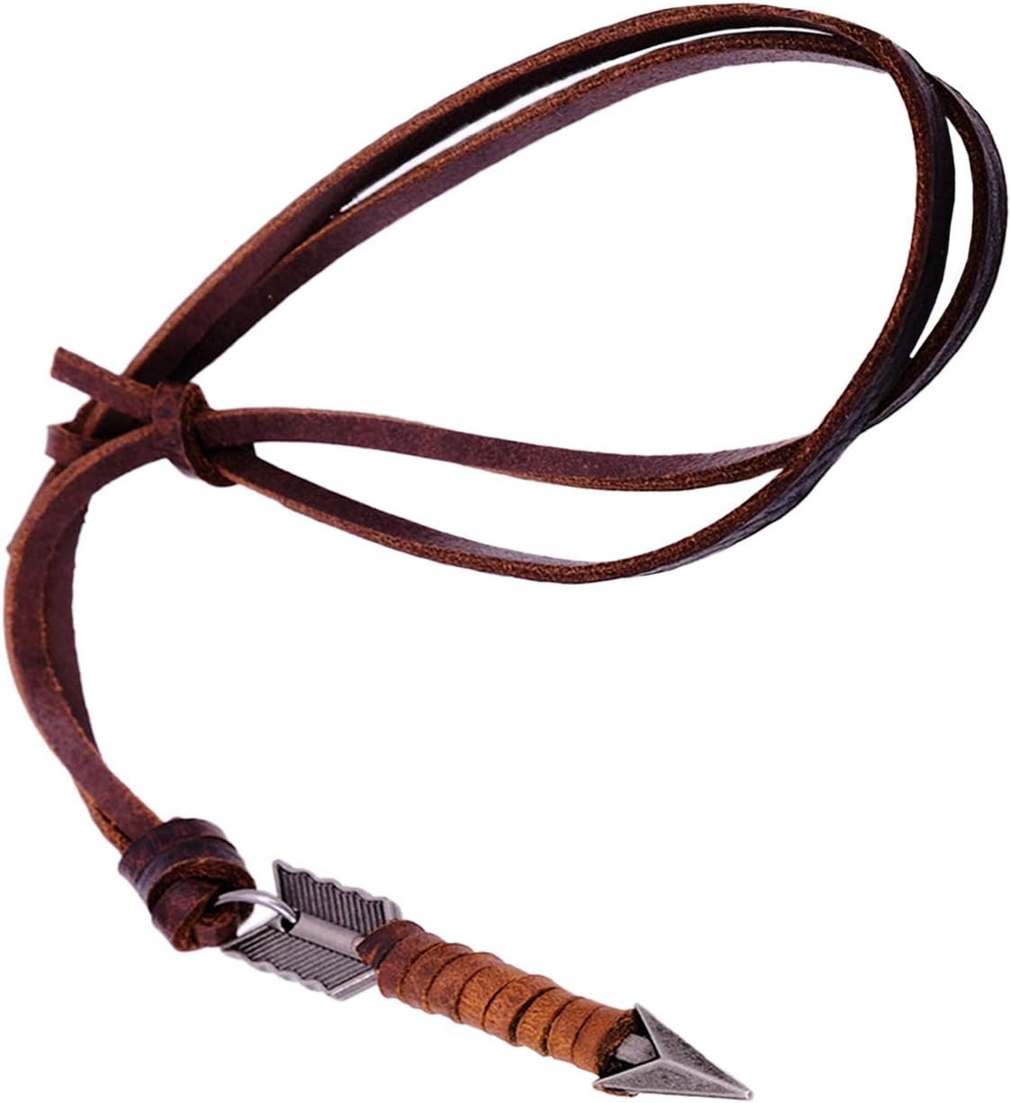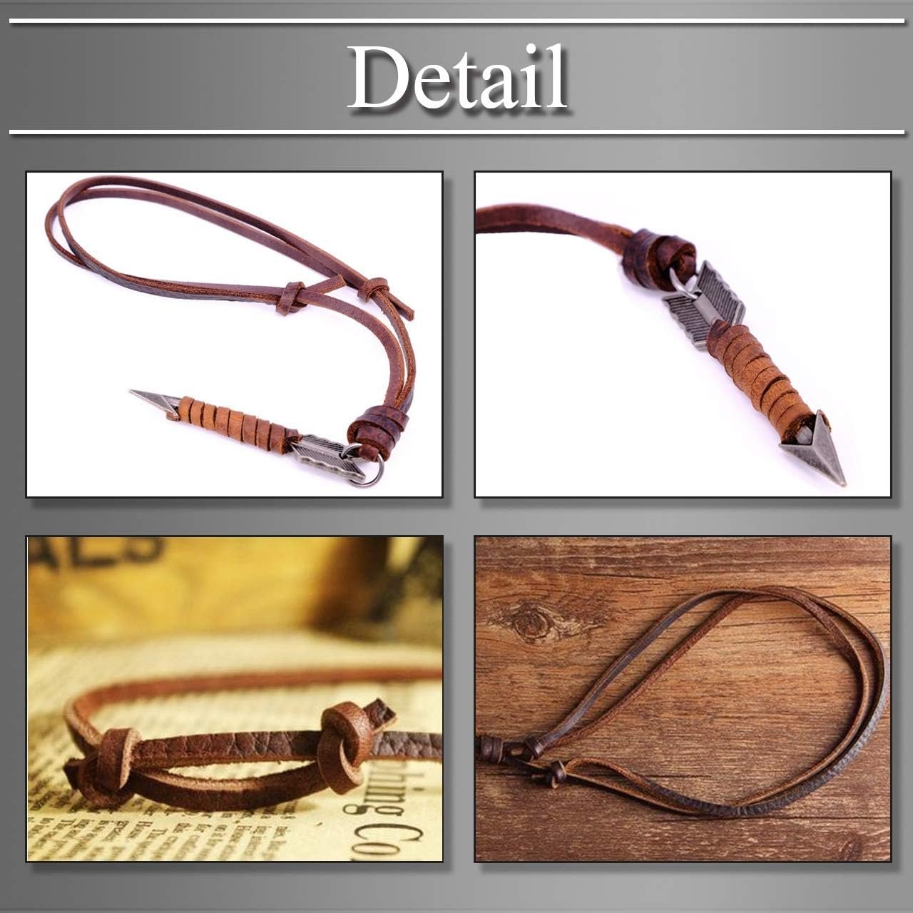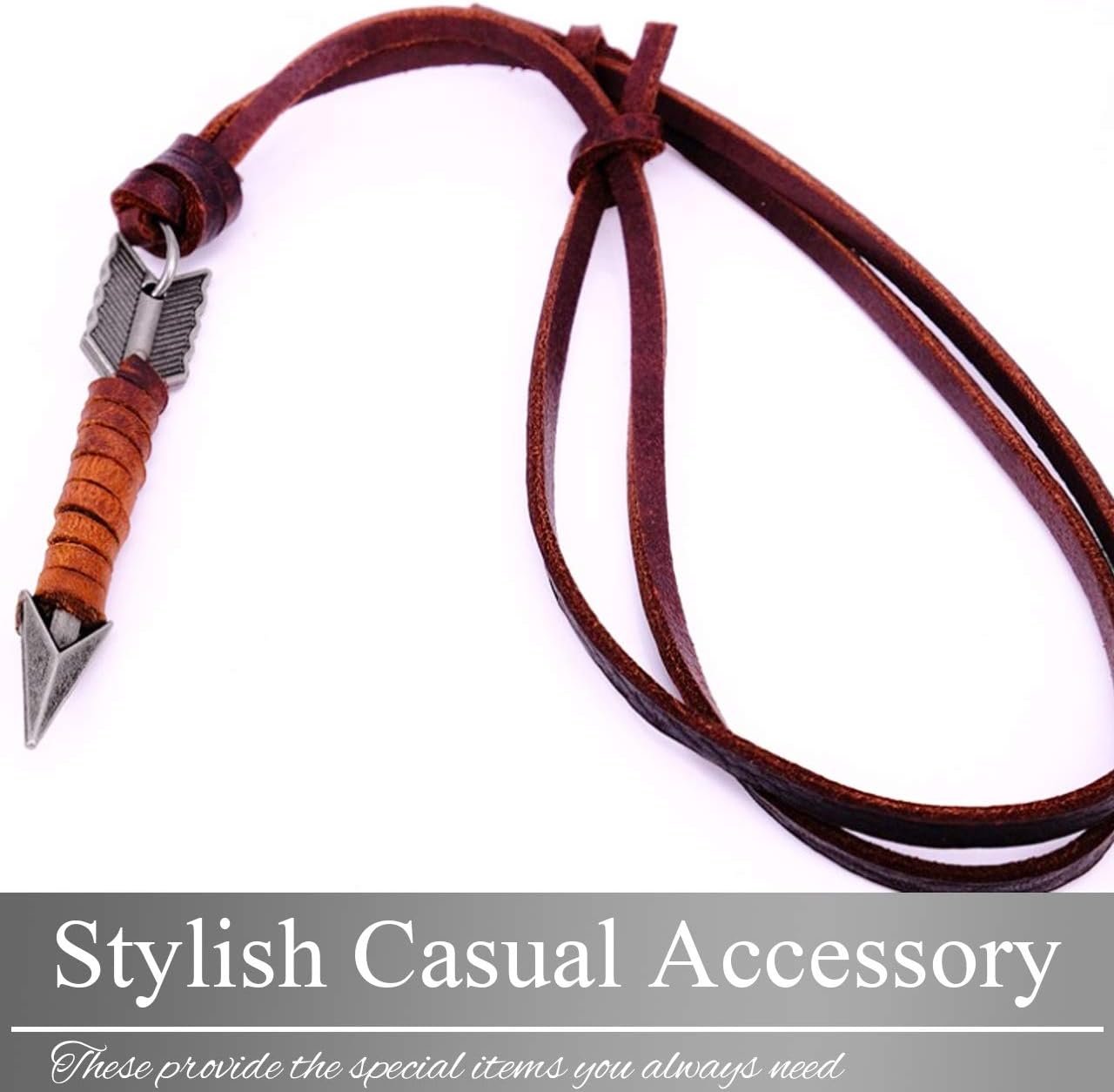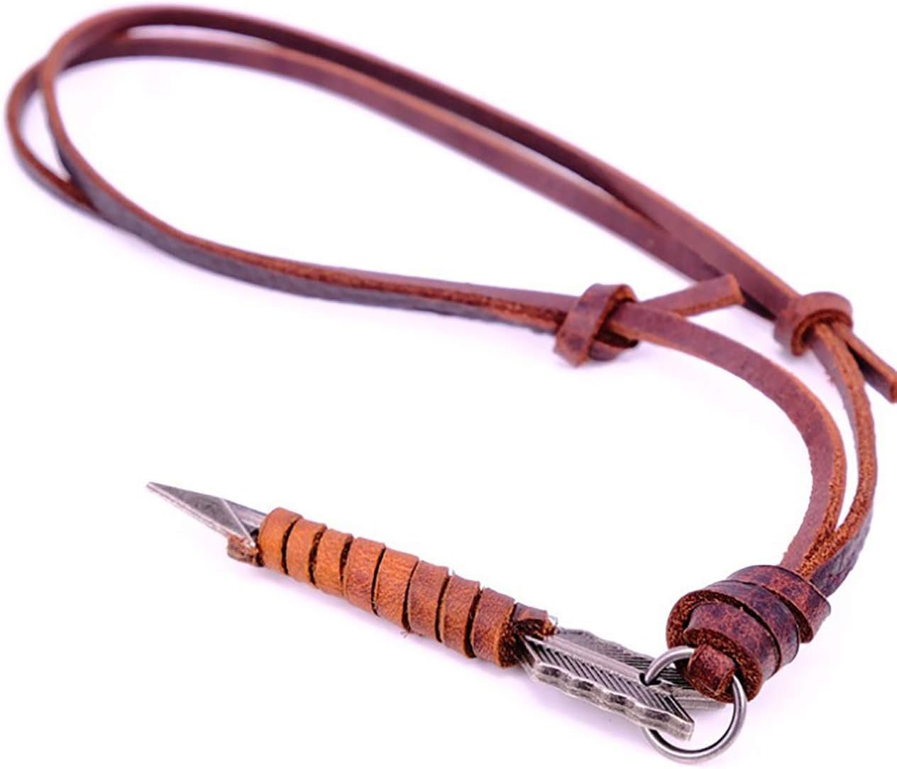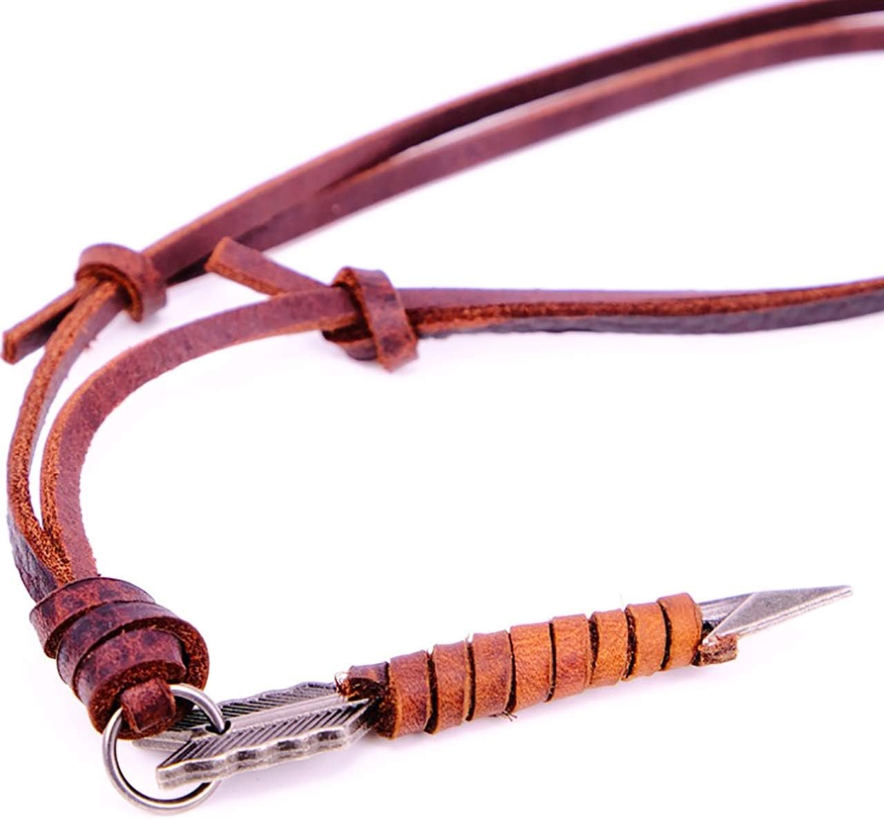 BuzzxSelection AC079メンズレザーコードネックレス、矢印、牛革革、レトロアクセサリー、スタイリッシュ