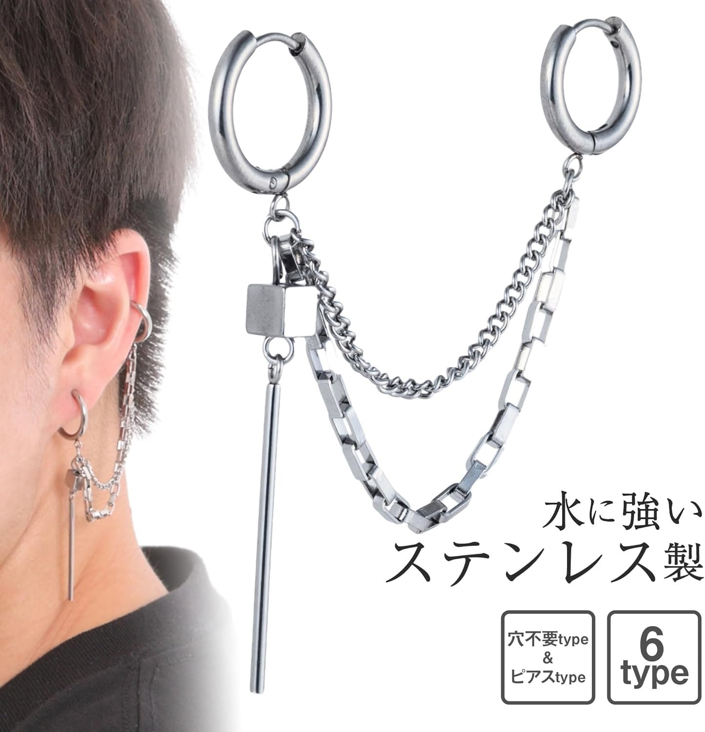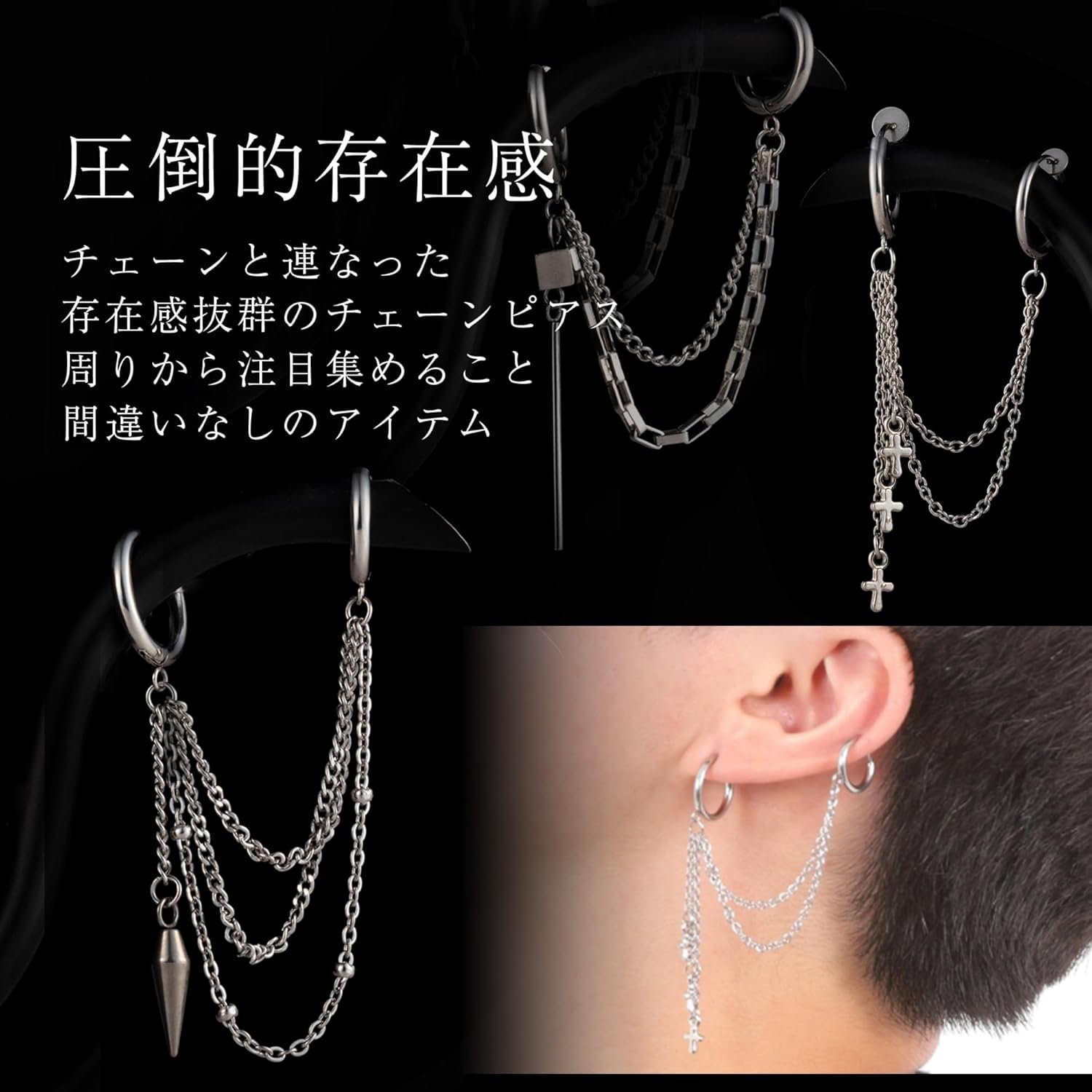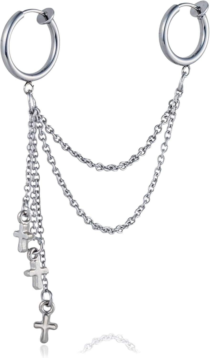 Puente Chain Earrings, Stainless Steel Earrings, Men’s Earrings, Hoop Earrings, Ring Earrings, Long Earrings, Silver Earrings, Chain, Double Chain, Silver, Silver, Stick Bar, Ring, Thick, Large,