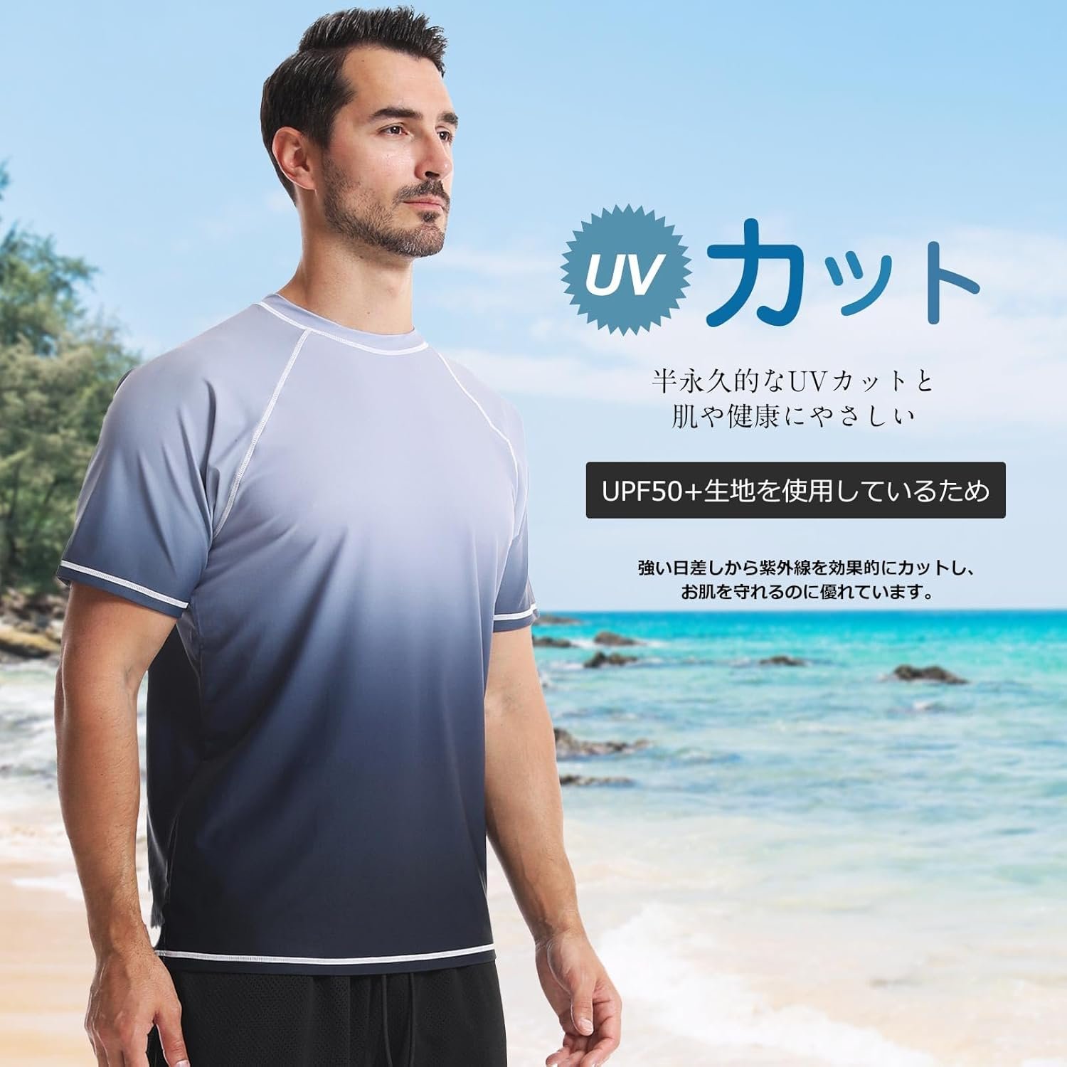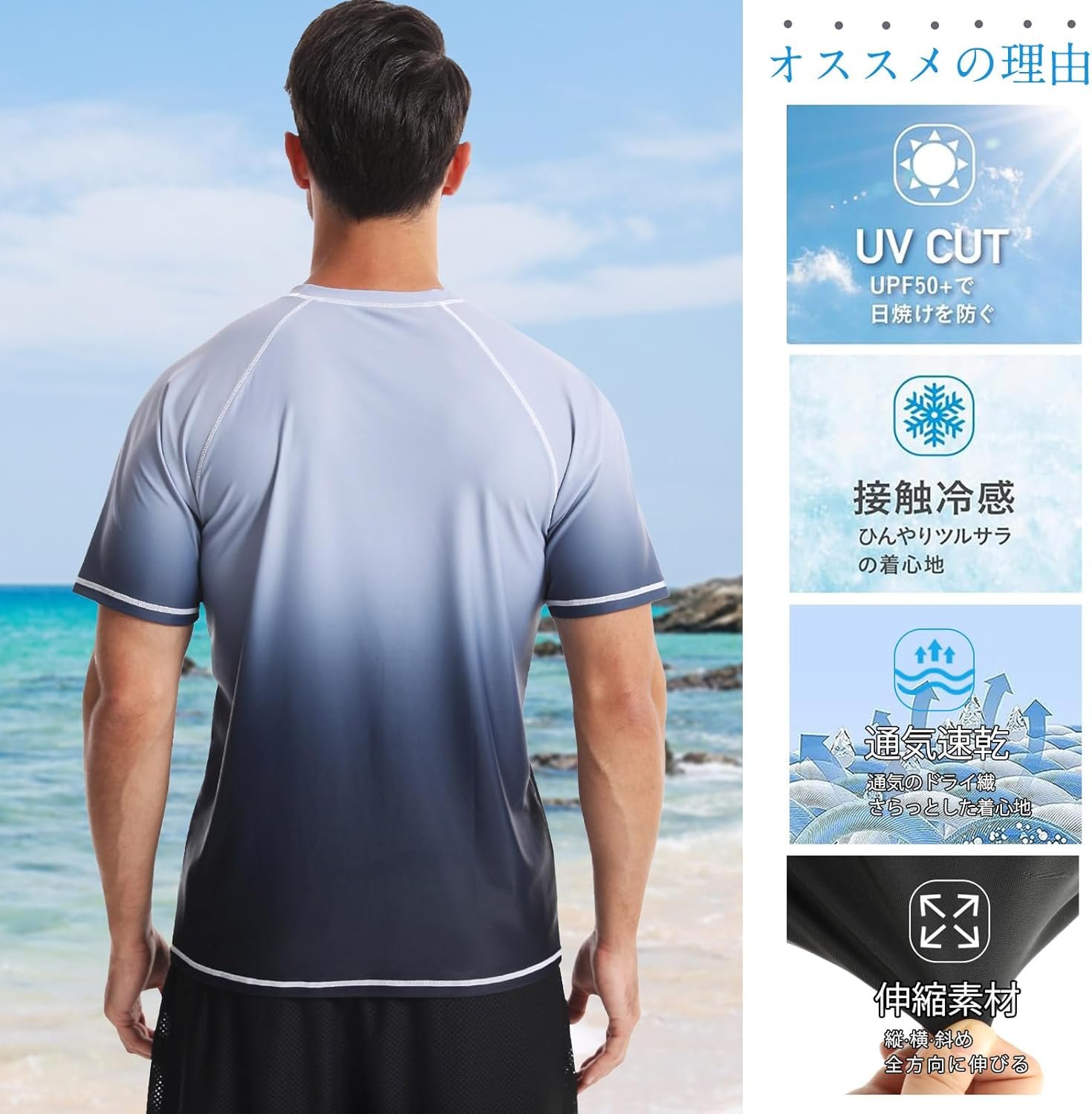 シュアナウ ラッシュガード 半袖 メンズ 水着 夏 UVカット 接触冷感 水着 スポーツシャツ 水泳 水陸両用 大きいサイズ マリンスポーツ 吸汗速乾
