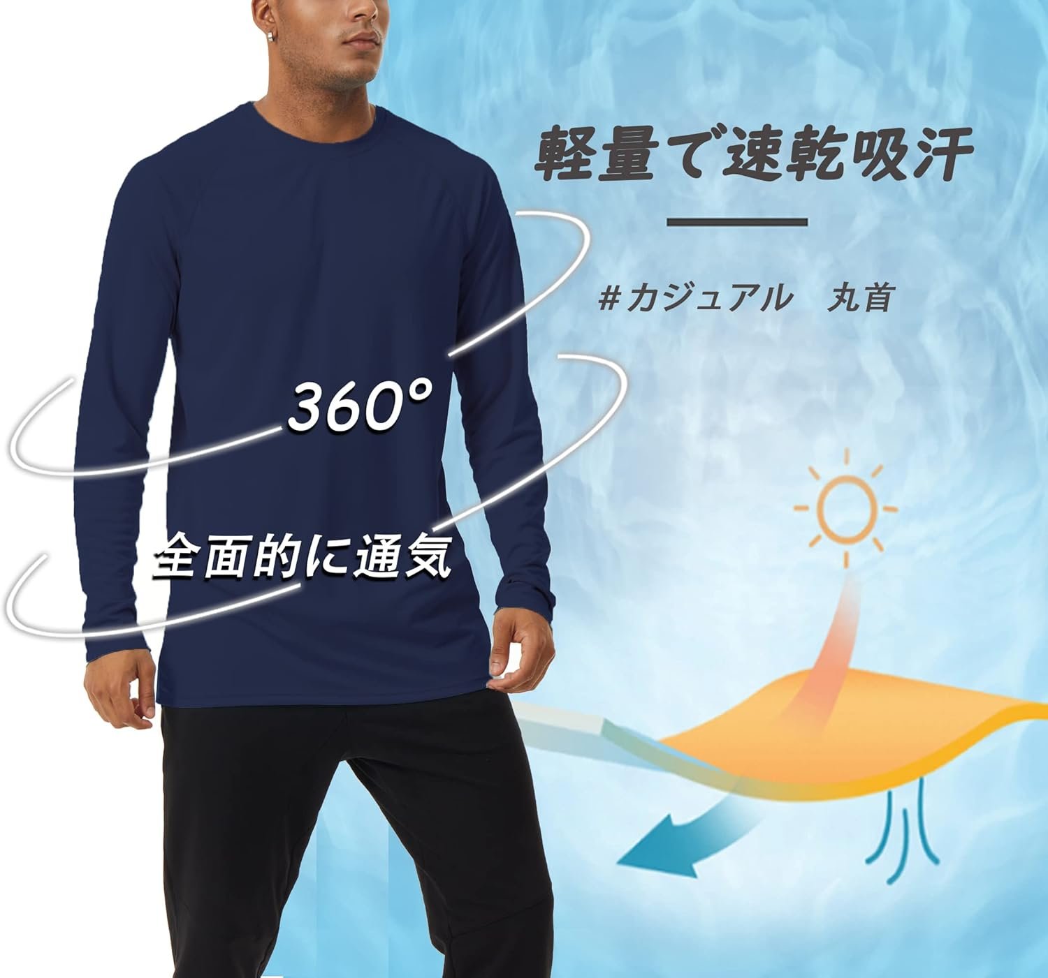タクバセンカジュアル長袖Tシャツ、メンズドライシャツ、UV保護、UPF 50+、長袖、汗吸収性、クイック乾燥、長いTシャツ、夏、ソリッド、ロングスリーブシャツ、ラグランスリーブ