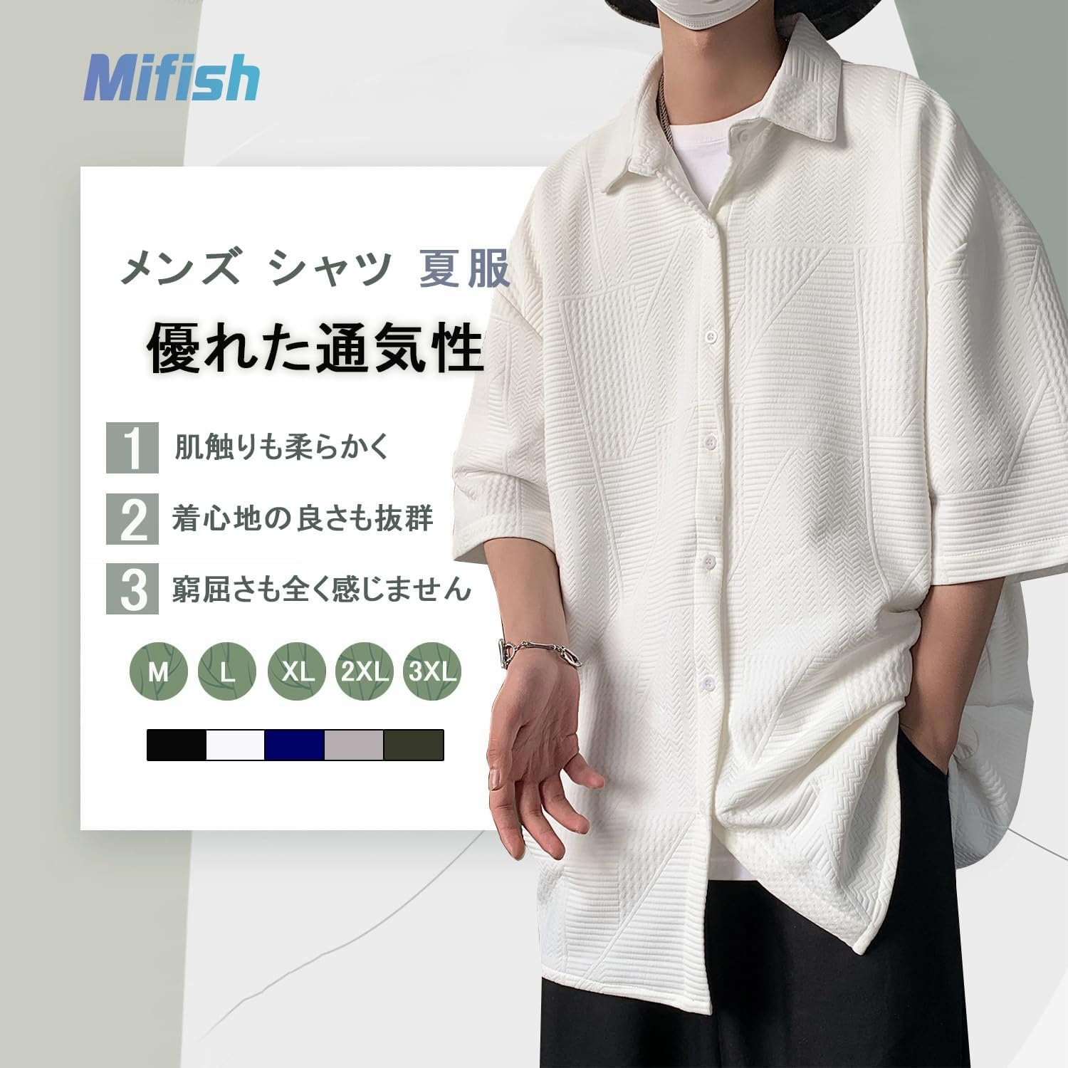 ミフィッシュメンズシャツ、半袖、夏の服、プレーン、大きなサイズ、カジュアル、ファッショナブル、ルーズ、シンプル、軽量、ソフト、人気、シャツ