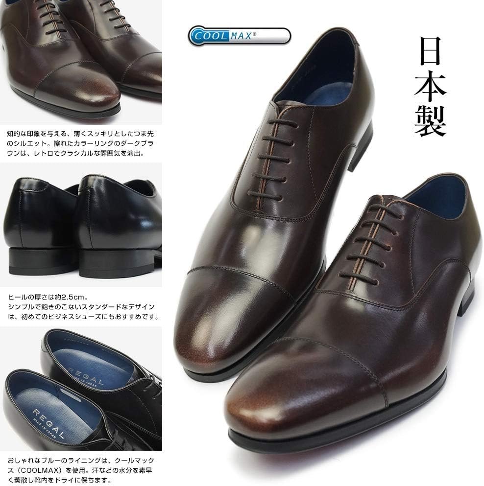 ■長すぎないラウンドラストとつま先を細くすっきりとしたシルエットで仕上げ、爽やかなブルーのライニングを採用。クールマックス(R)裏地 サラッとした肌触りでベタつきを軽減します。夏に向けて快適な一足です。 Coolmax(R)およびfreshFX(R)はインビスタ社の商標です。 ※モニターの発色の具合によって実際のものと色が異なる場合がございます。 ※デザインや個人の足タイプで若干の違いはございますが、REGALの商品は一般的な日本製革靴に比べて大きめの作りとなっております。ご注文の際はご注意ください。