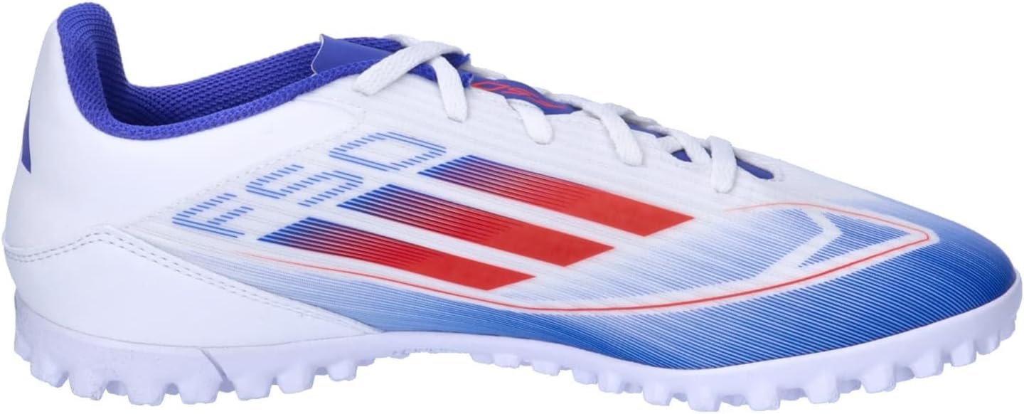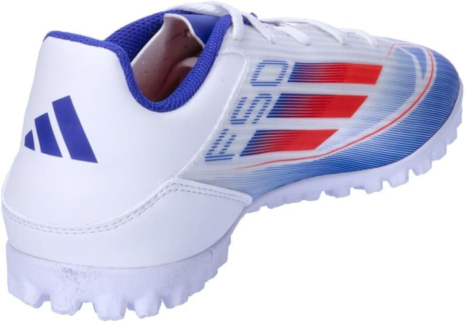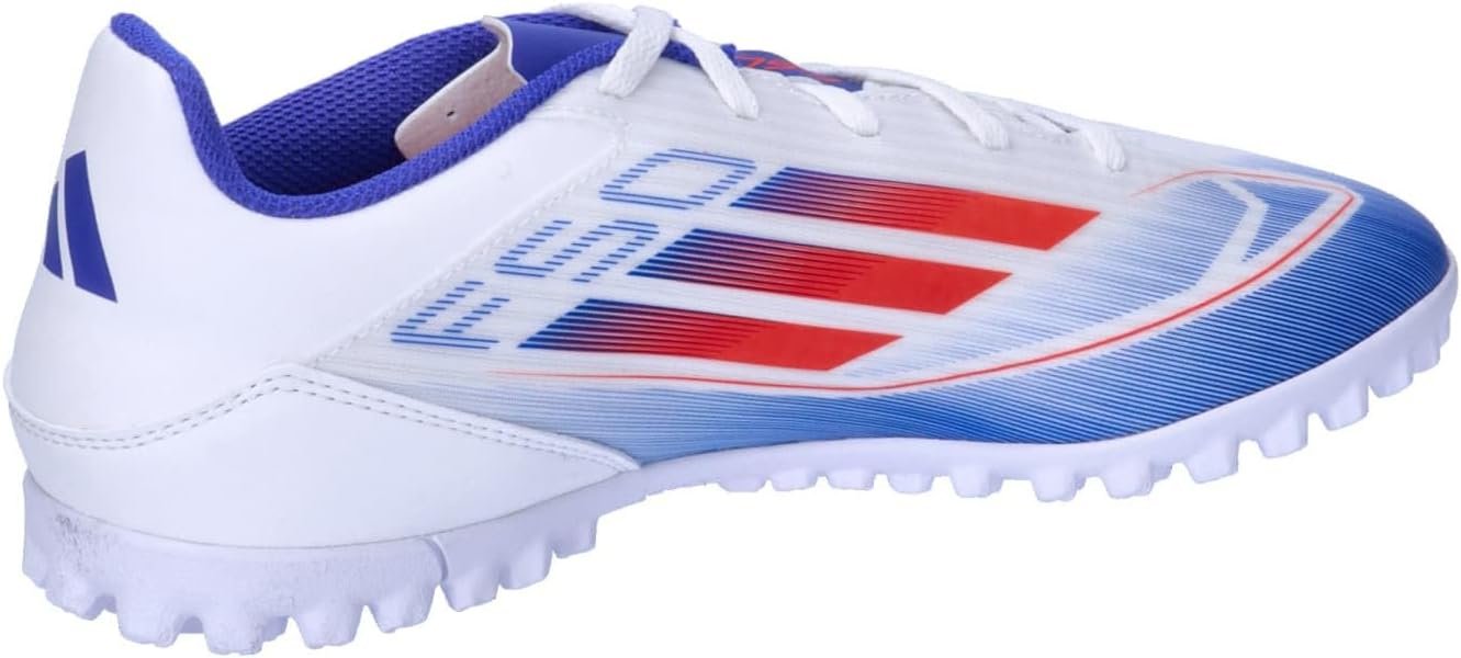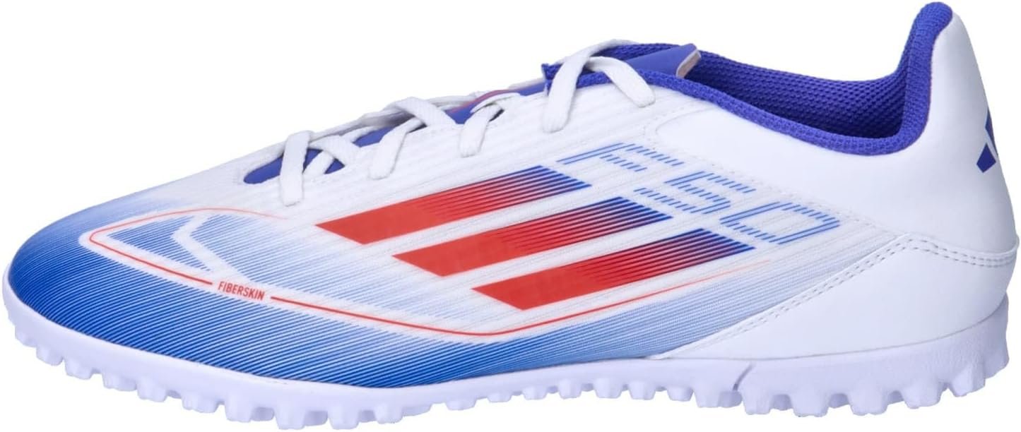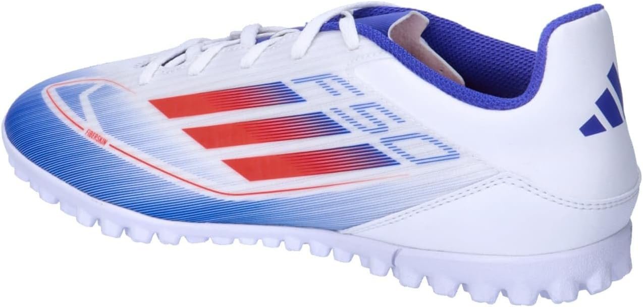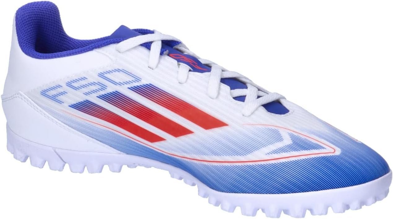 f50で速さを解き放て。異次元の加速と動き、スピードを可能にするテクノロジーで。これは、凹凸のあるファイバースキンアッパーと通気孔を施したシュータンが特徴の、快適なフットワークを支えるシューズ。ターフコートを俊敏に駆け抜け、対戦相手を翻弄するのをアシストする、突起のあるラバーアウトソールを採用したモデル。この製品には、リサイクル素材を20%以上使用。製造された製品の素材をリユースすることで、ゴミの量、限りある資源への依存、そしてアディダス製品のフットプリントを減らすことにつながる。