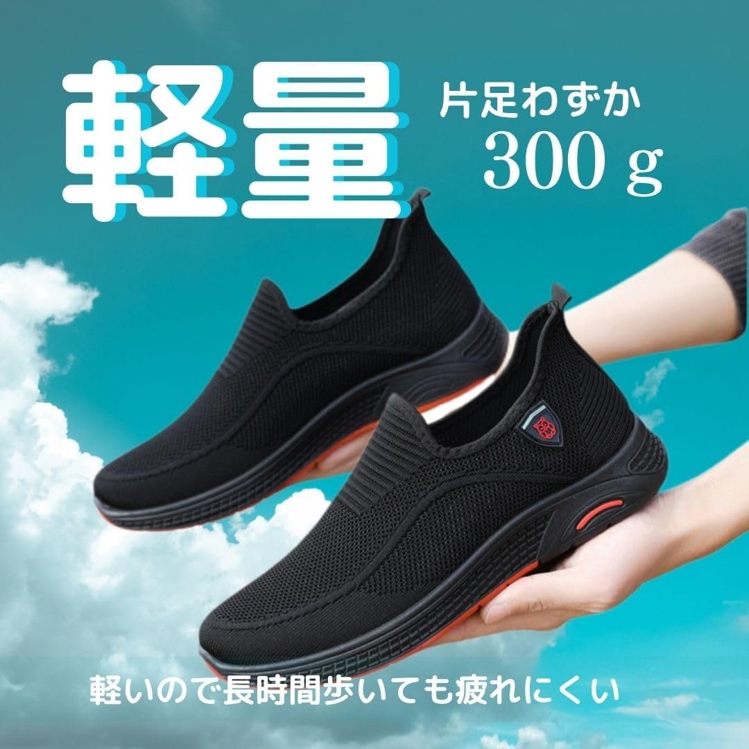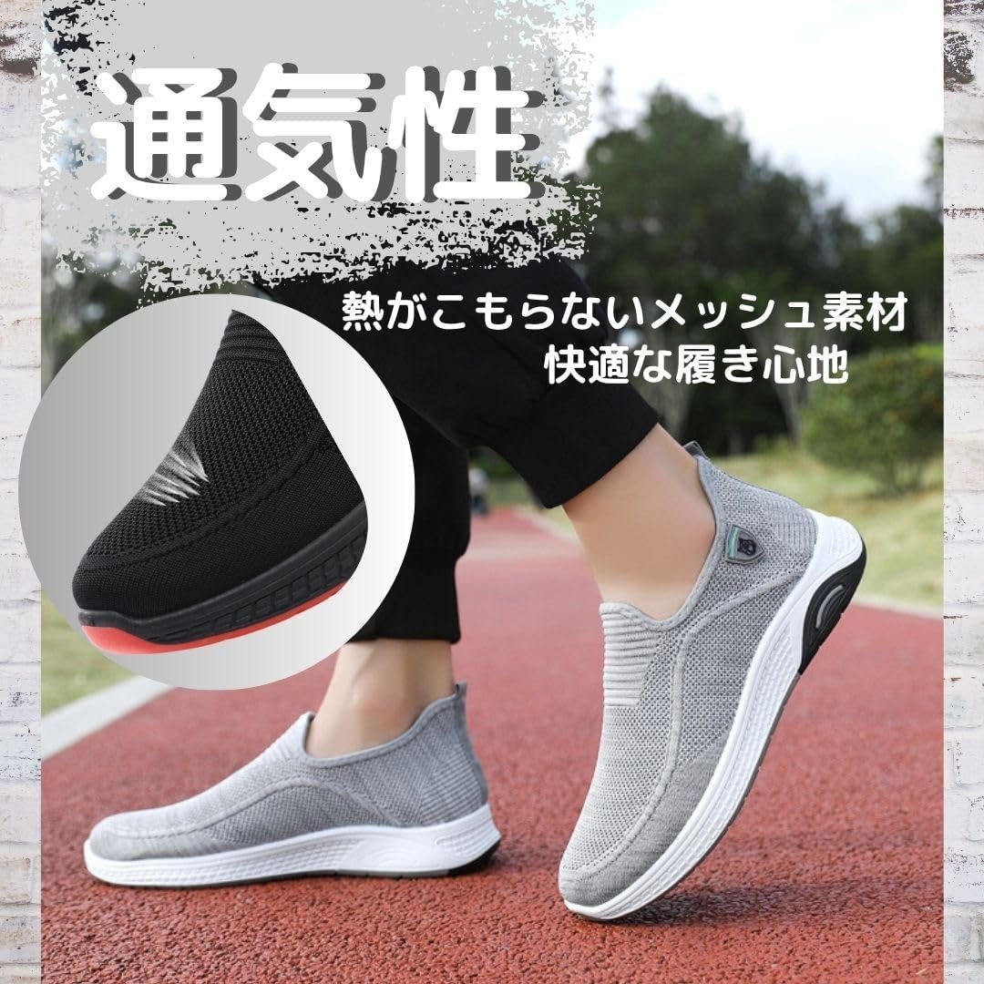 [DeerLuxe]スリッポン スニーカー メンズ 軽量 カジュアルシューズ メッシュ素材 通気性 柔らかい 履きやすい 滑り止め ウォーキングシューズ