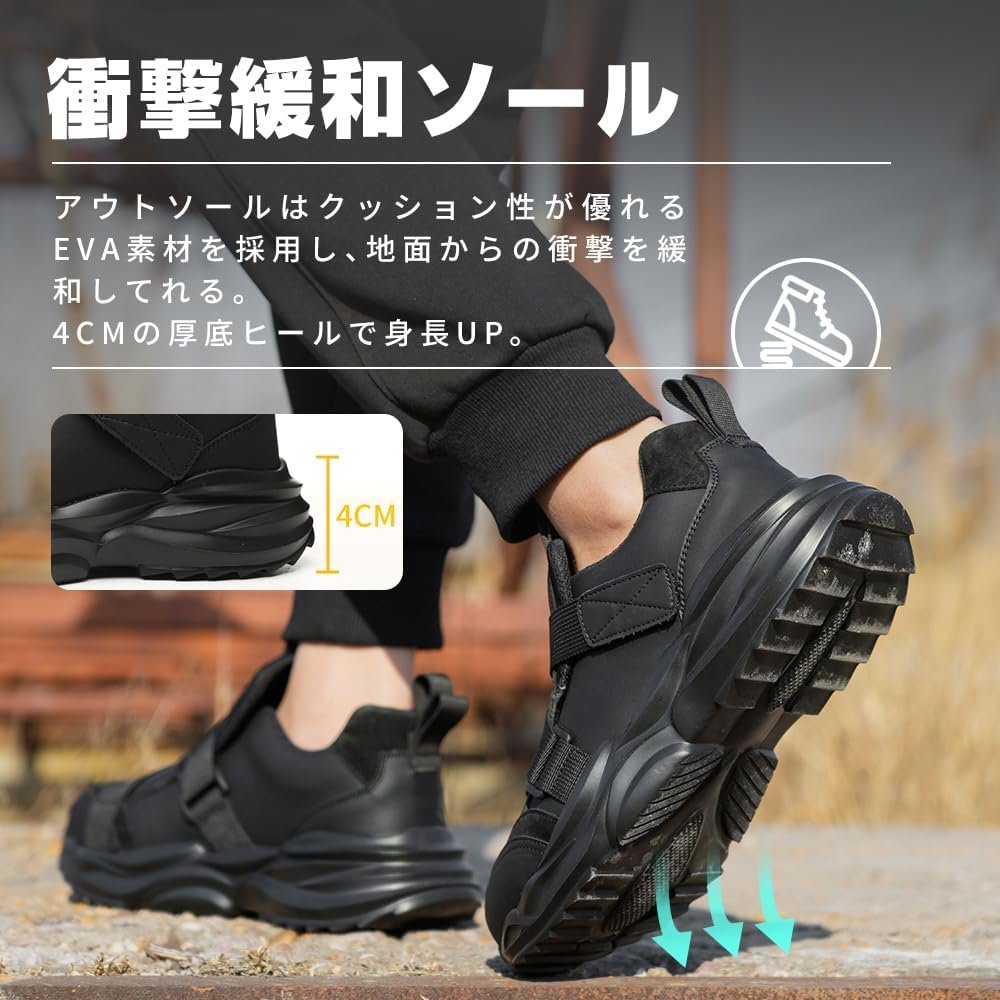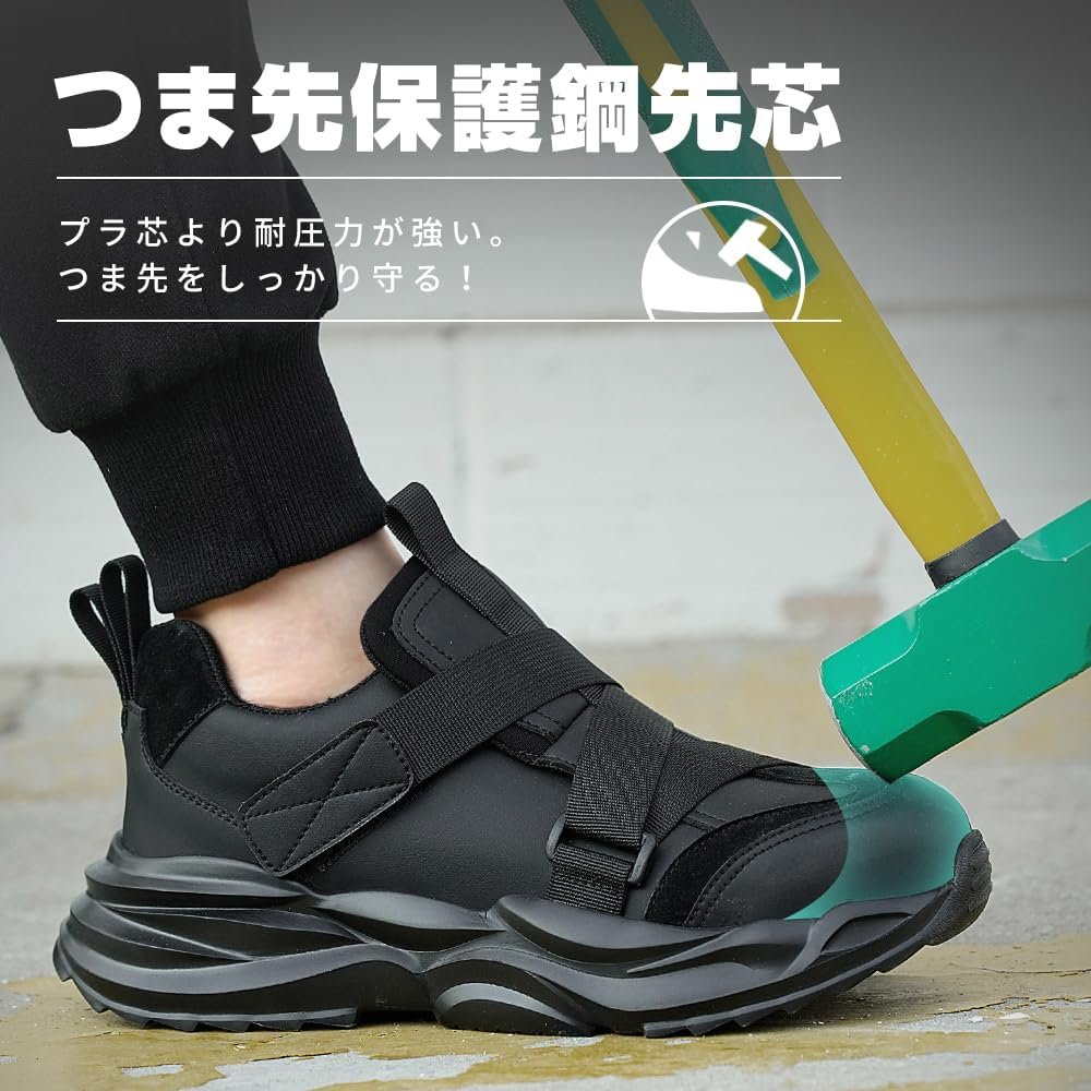 「鋼のつま先のコア」と「ネイルトレッド予防ミッドソール」は、つま先とソールを重い物やナイフから安全な保護を提供します。建設現場や物流会社、軽い労働者、トラックドライバーなどで働く人々に推奨されます。