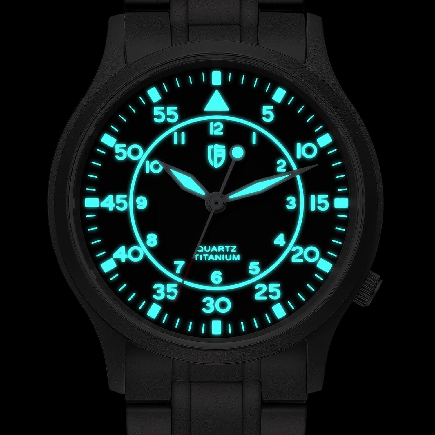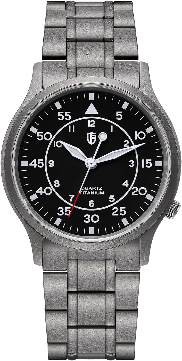 ベルニーウォッチメンズウォッチメンチタンチタン時計時計スイープセカンドクォーツムーブメントチタンアナログクォーツウォッチ5atm耐水性チタン軽量、ブラック(2)、ブレスレットタイプ