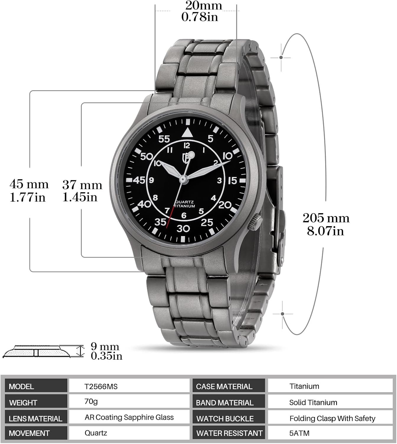Be the first to review “ベルニーウォッチメンズウォッチメンチタンチタン時計時計スイープセカンドクォーツムーブメントチタンアナログクォーツウォッチ5atm耐水性チタン軽量、ブラック(2)、ブレスレットタイプ”