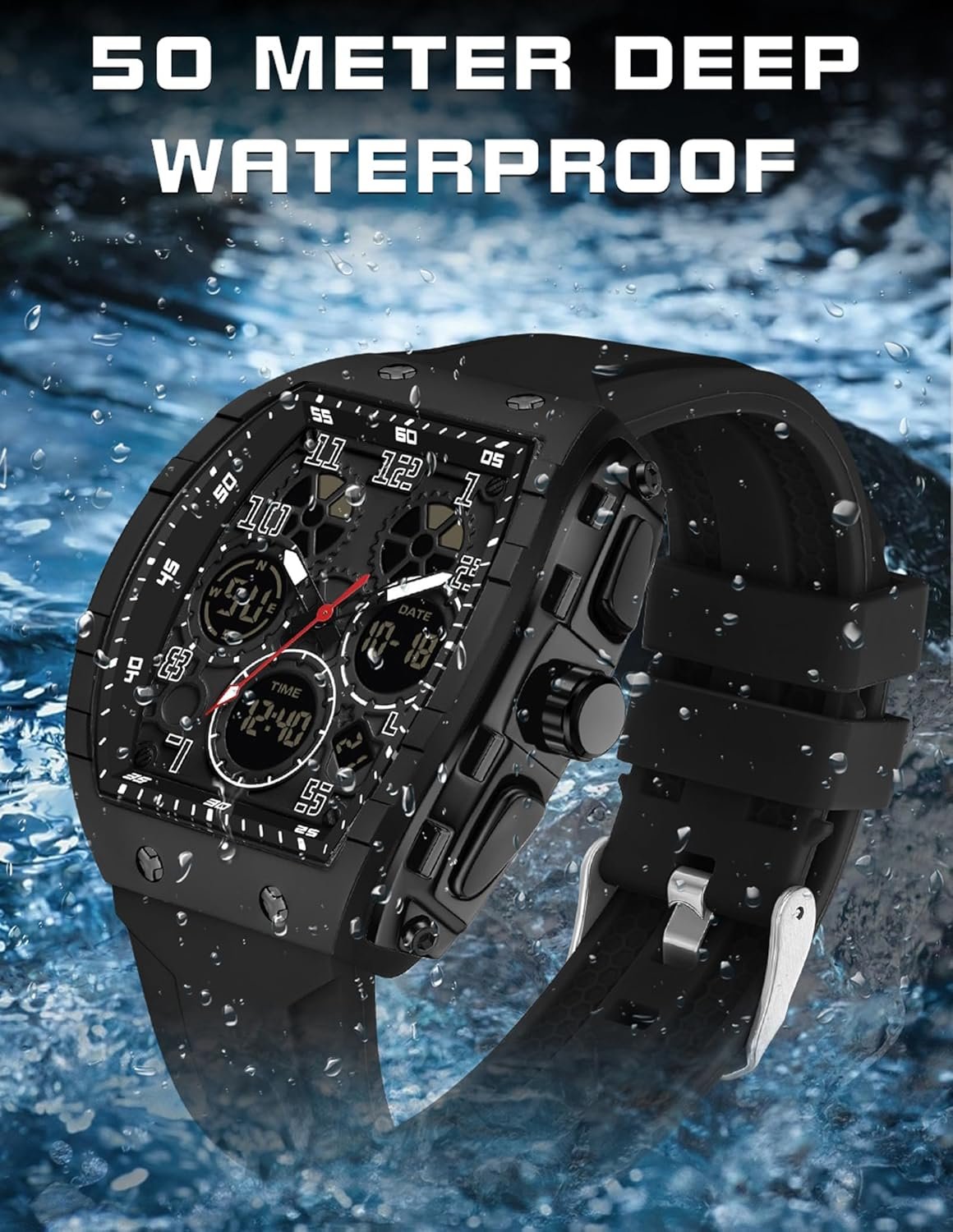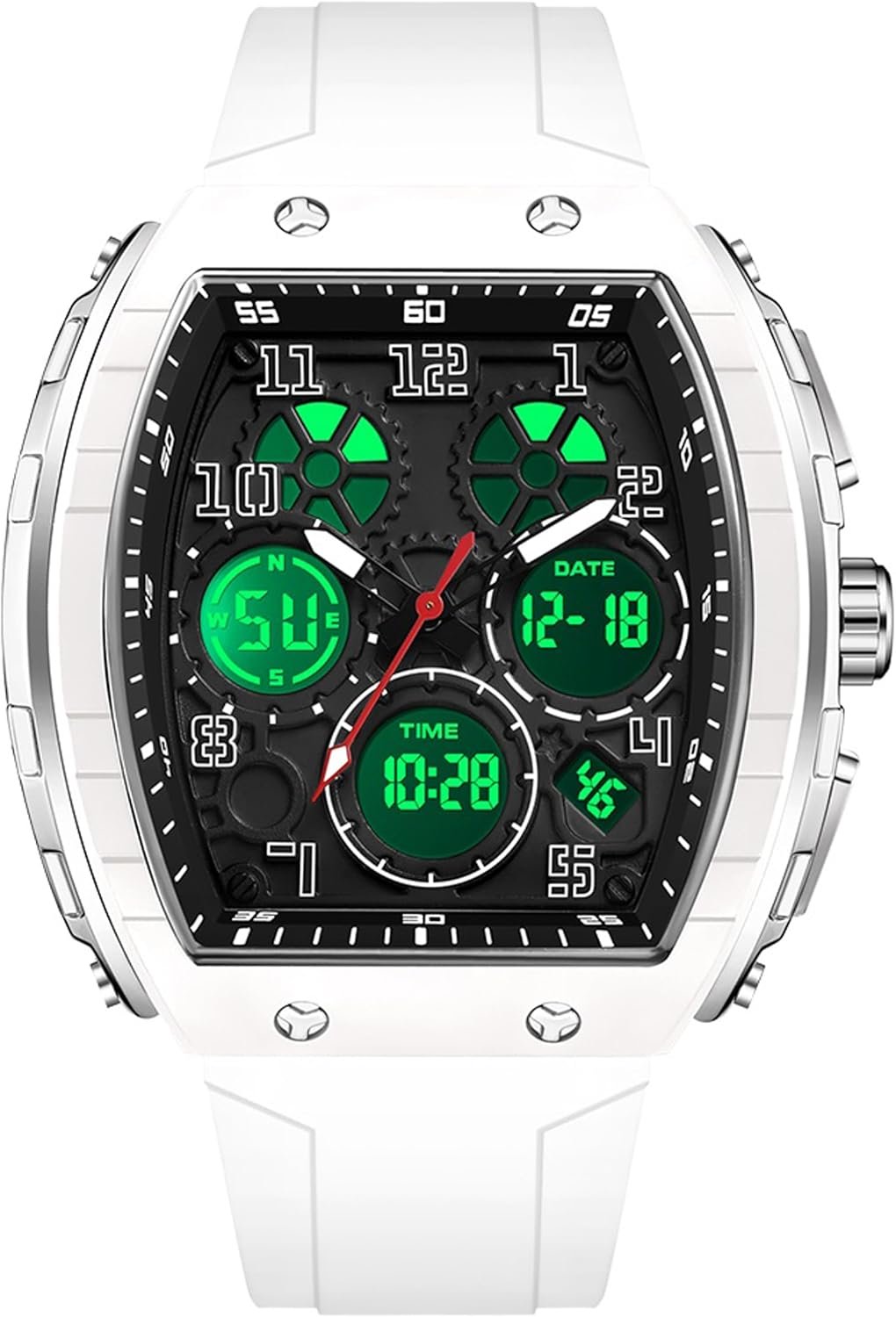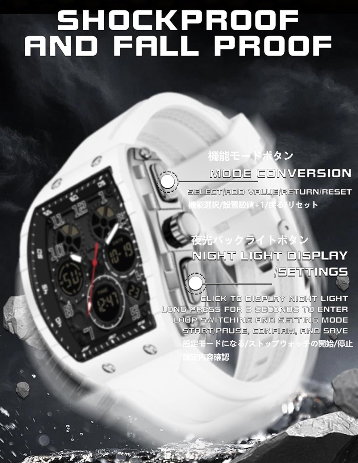 メンズウォッチ、デジタルウォッチ、アナログウォッチ、防水、ビジネス、スタイリッシュ、シリコンストラップ、メンズウォッチ、LEDウォッチ、多機能、ホワイト