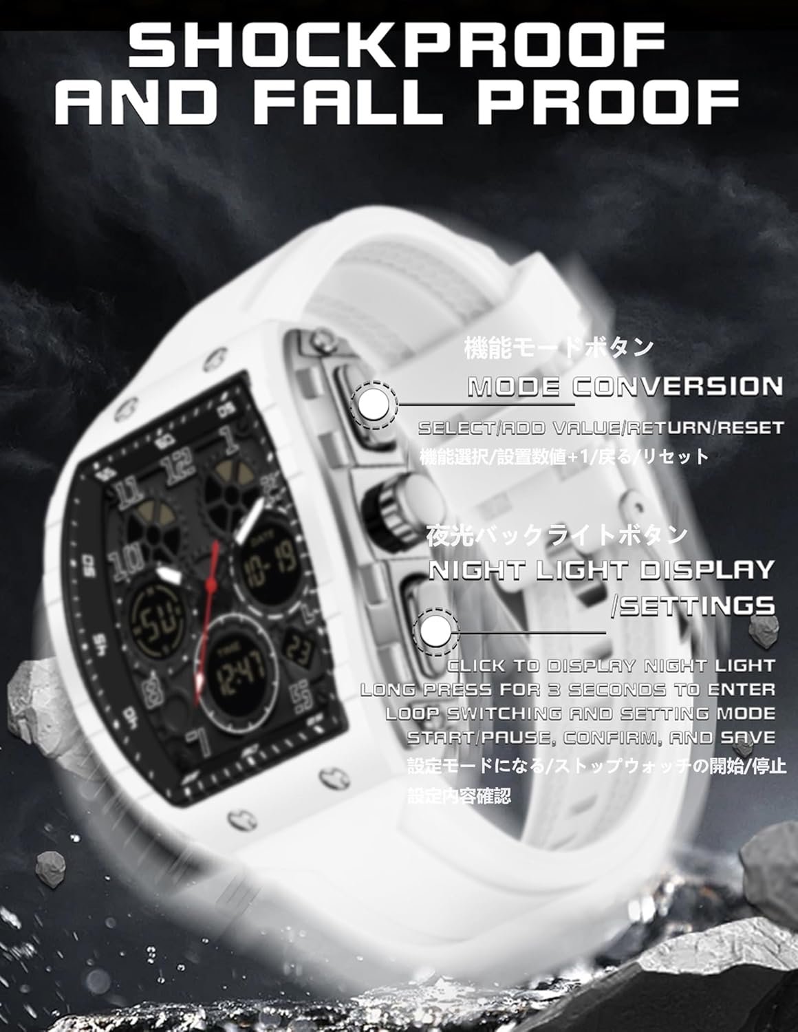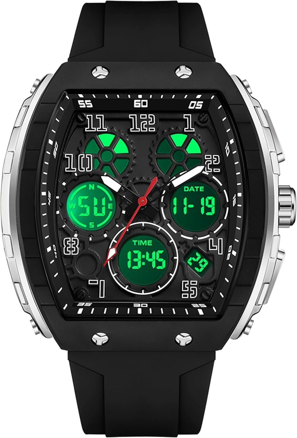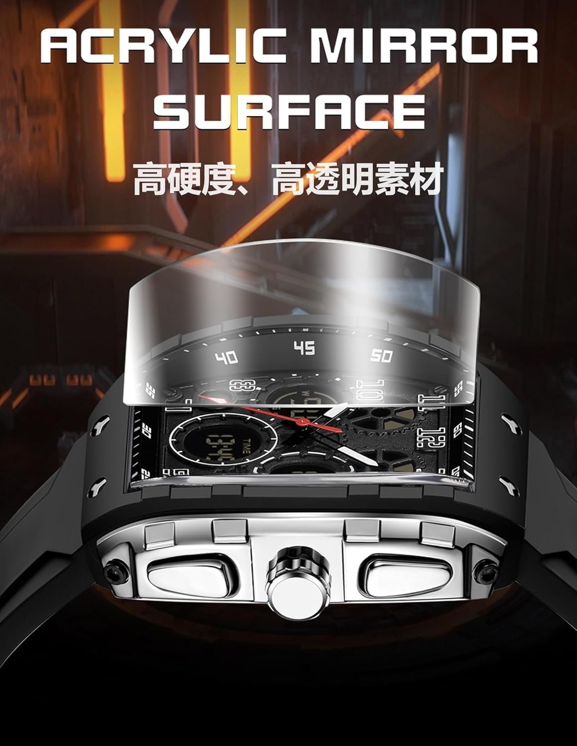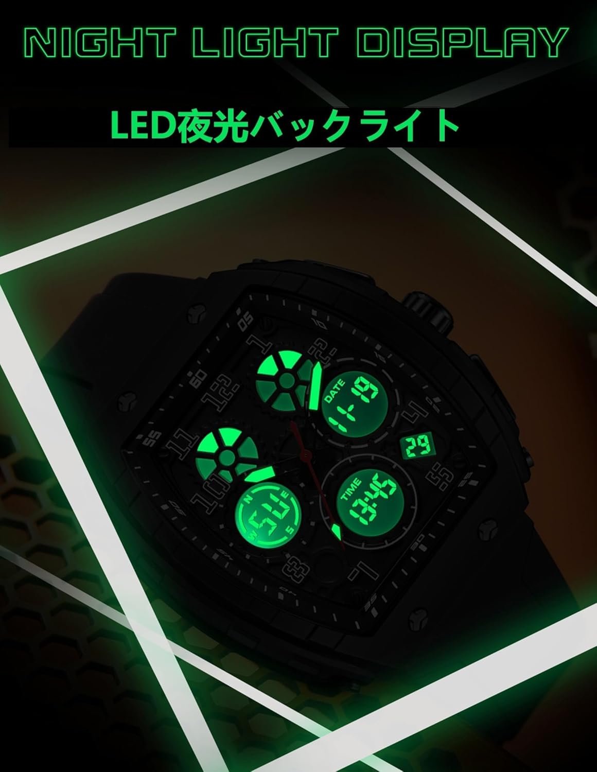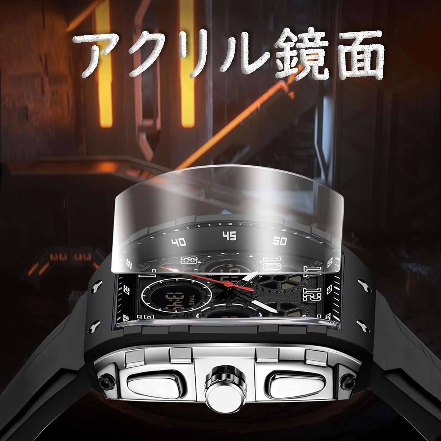 メンズウォッチ、デジタルウォッチ、アナログウォッチ、防水、ビジネス、スタイリッシュ、シリコンストラップ、メンズウォッチ、LEDウォッチ、多機能、ブラックシルバー