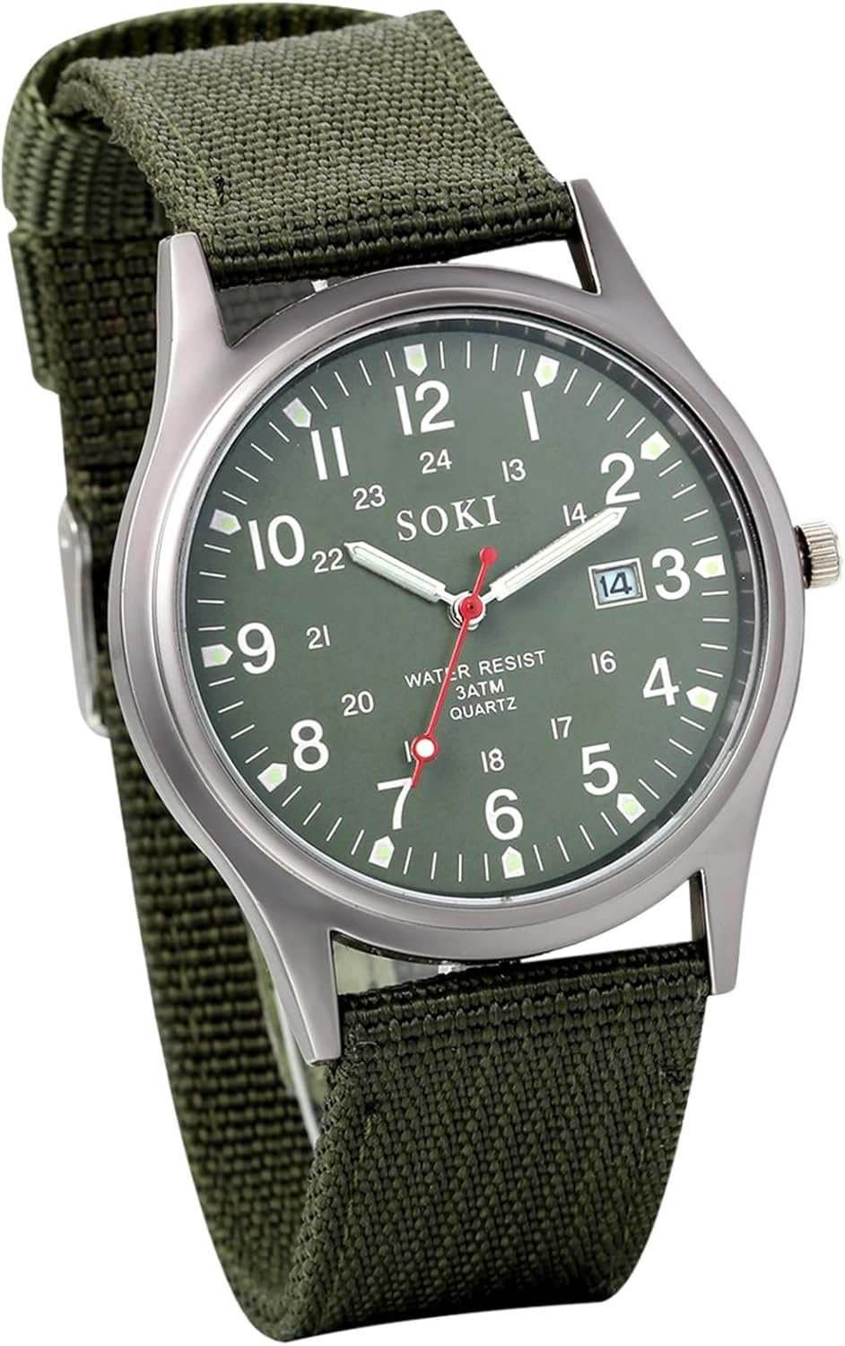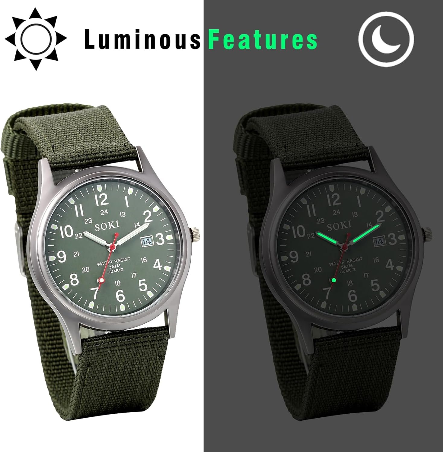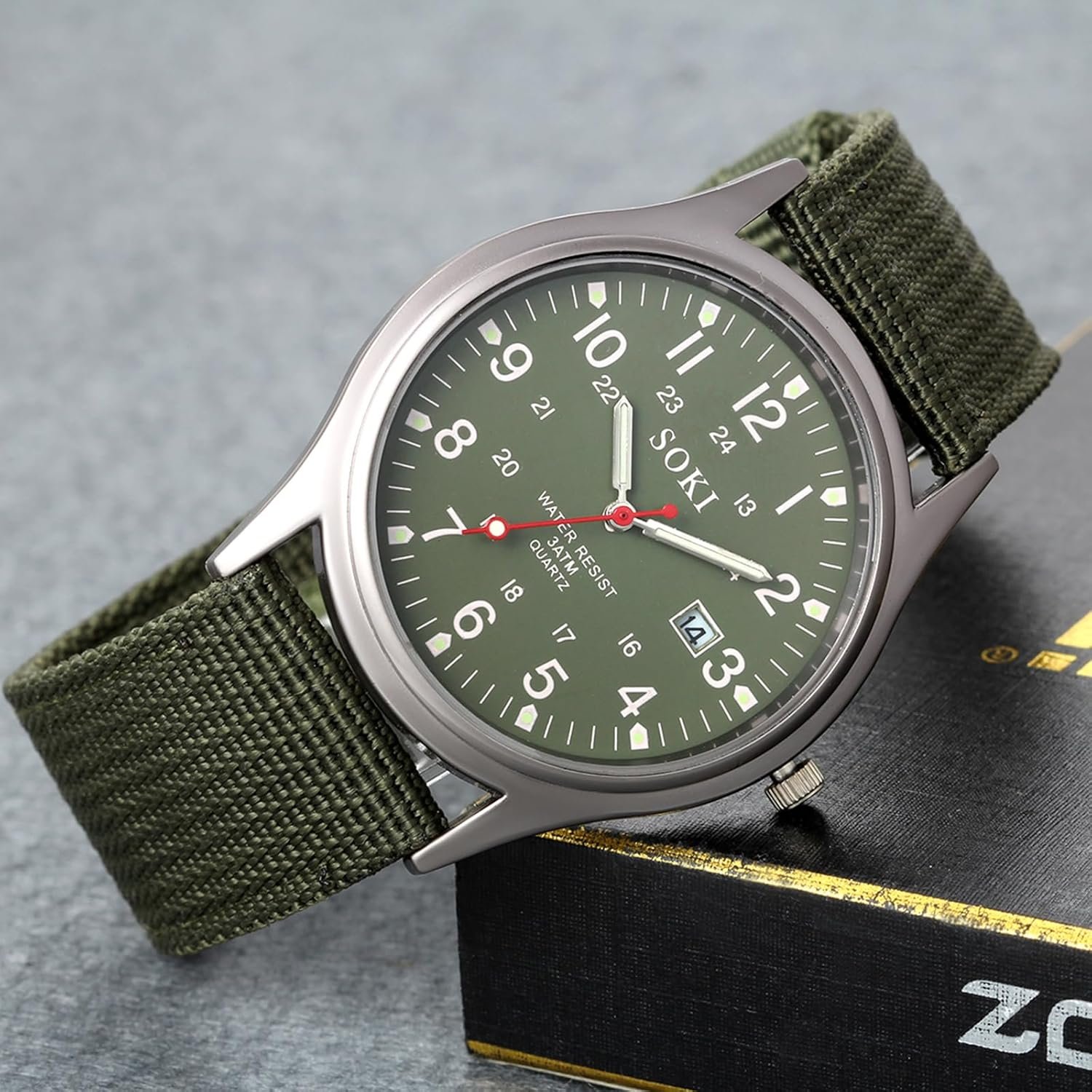 メンズウォッチセイコーウォッチ防水照明アラビア数字シミュレーションミリタリーウォッチ屋外24時間luminousポインタークォーツ大型ダイヤルシンプルナイロンストラップ、アーミーグレ