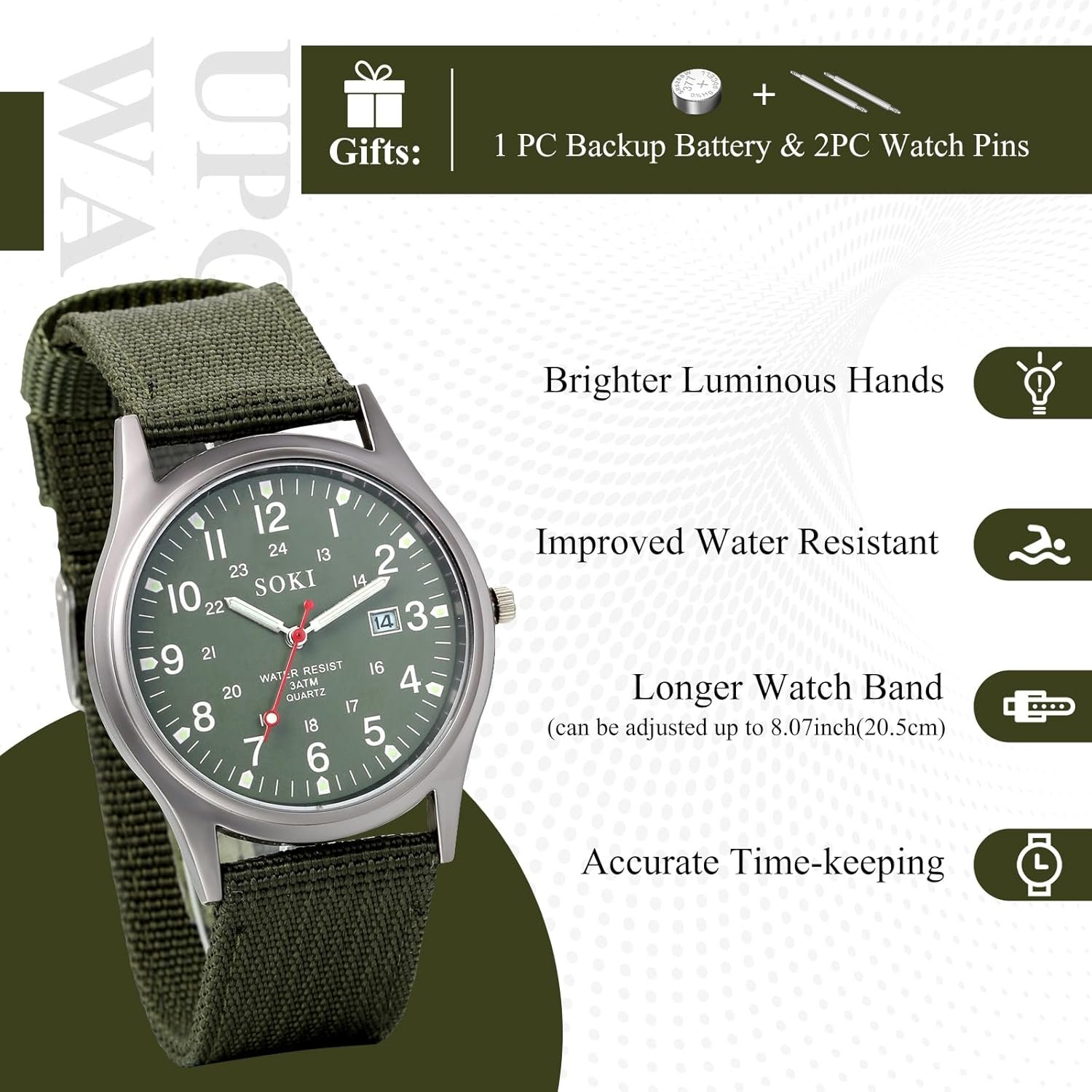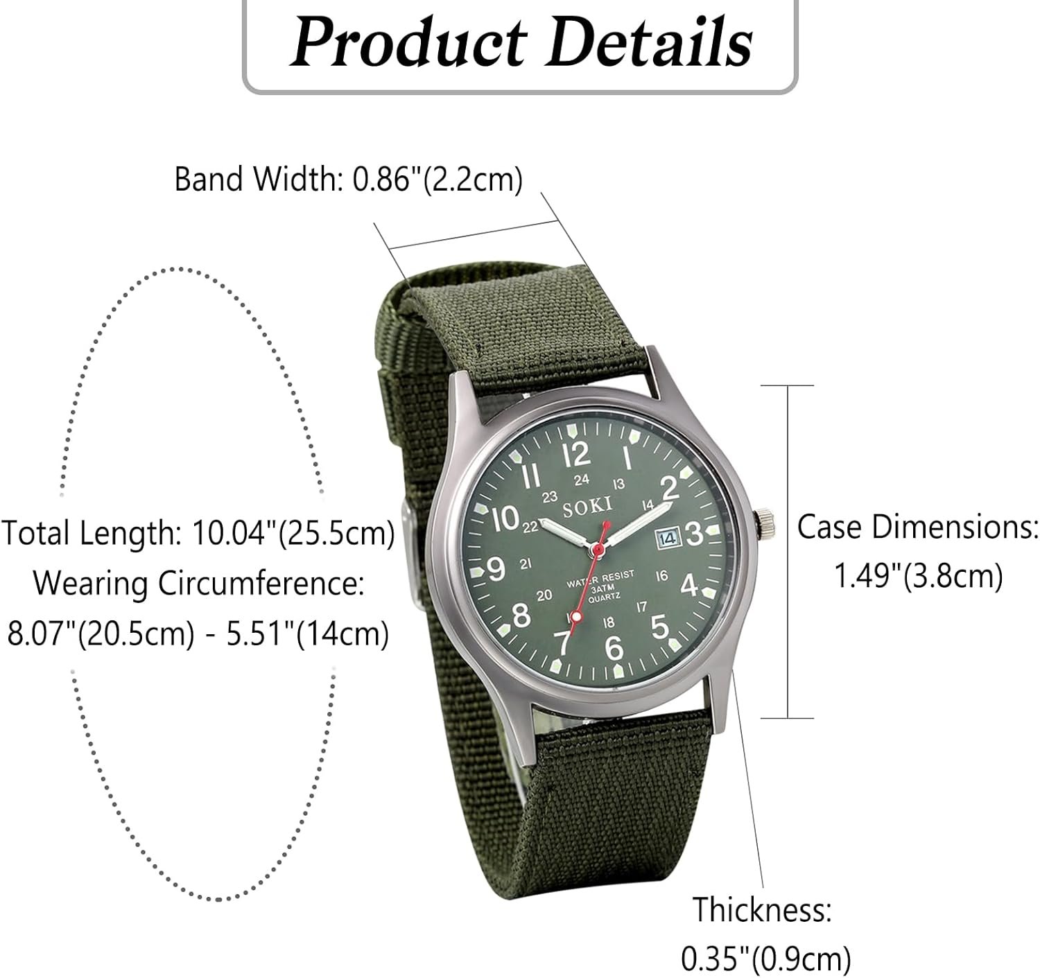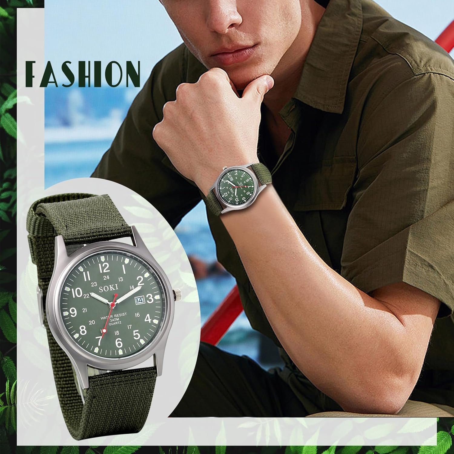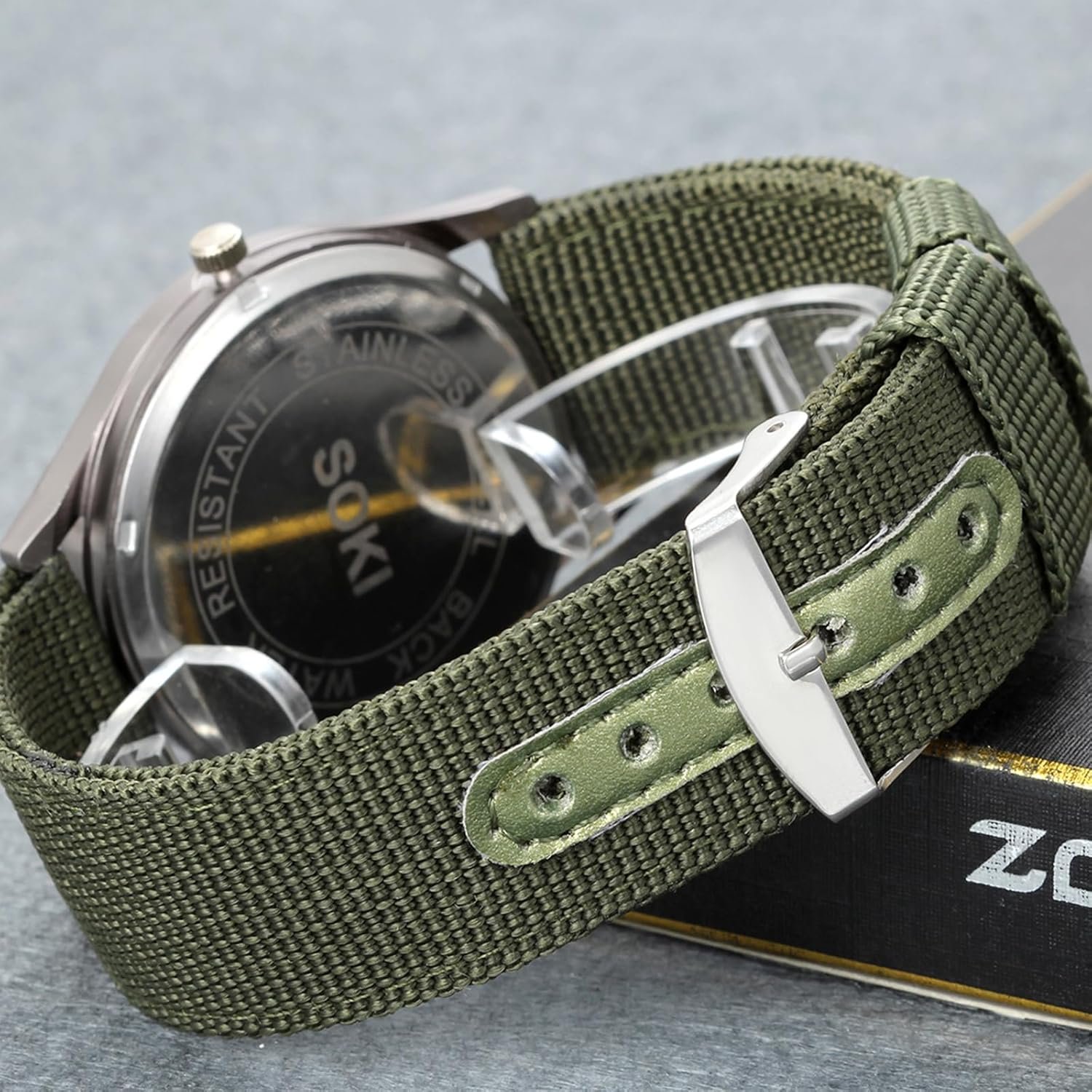 メンズウォッチセイコーウォッチ防水照明アラビア数字シミュレーションミリタリーウォッチ屋外24時間luminousポインタークォーツ大型ダイヤルシンプルナイロンストラップ、アーミーグレ