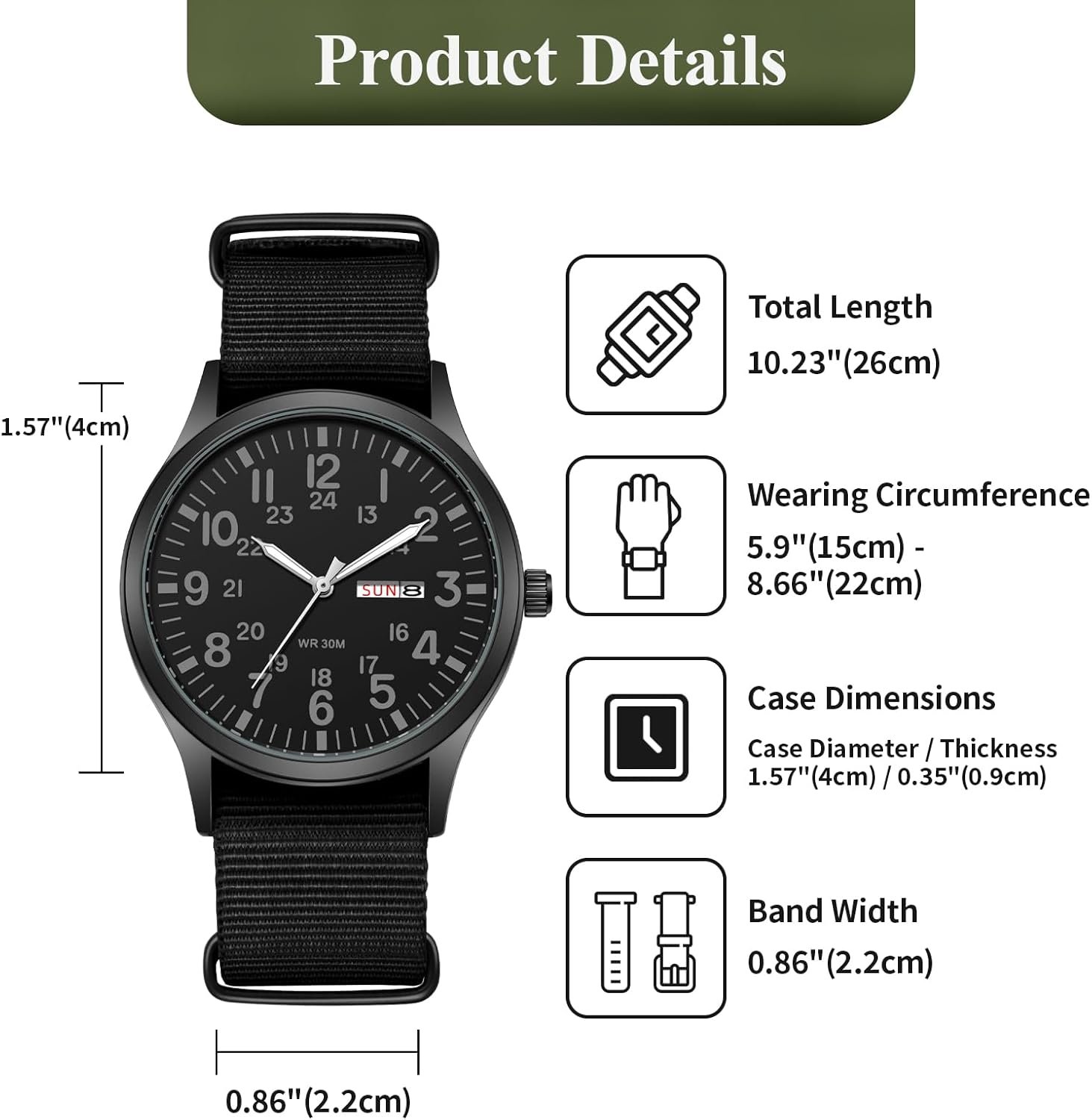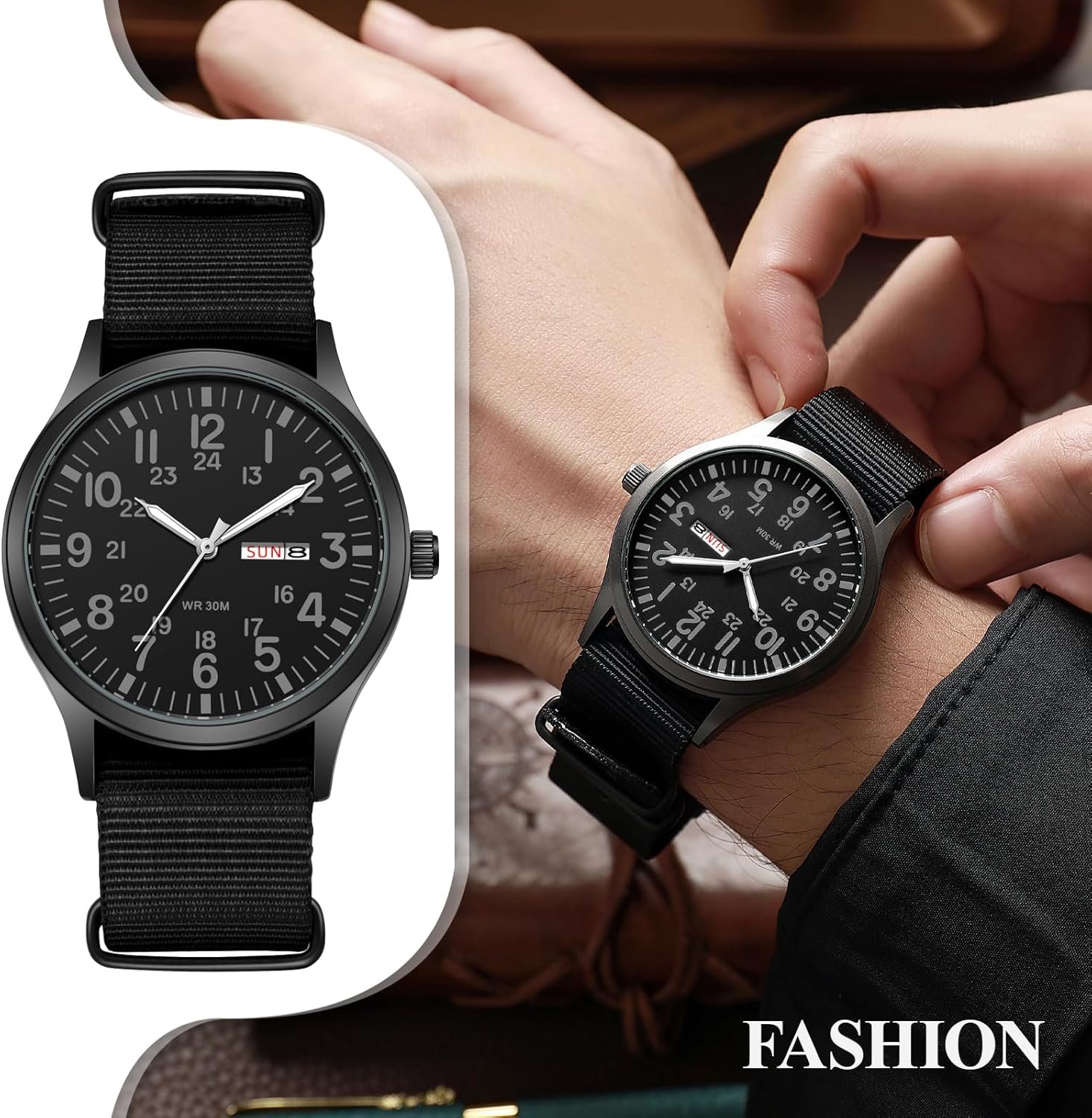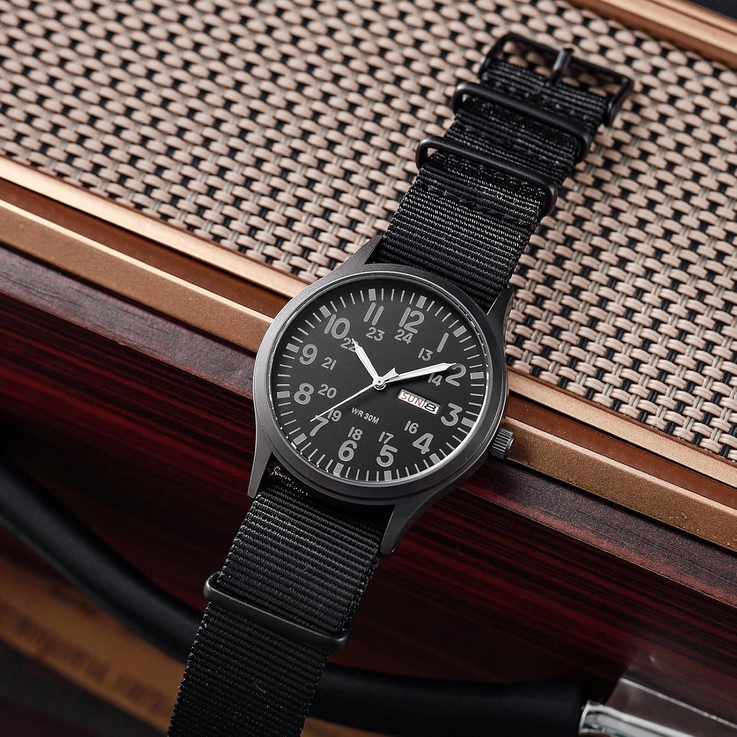 屋外の軍事用リストウォッチメンズアナログディスプレイナイロンストラップ:カレンダーの明るい指数付きクォーツ時計