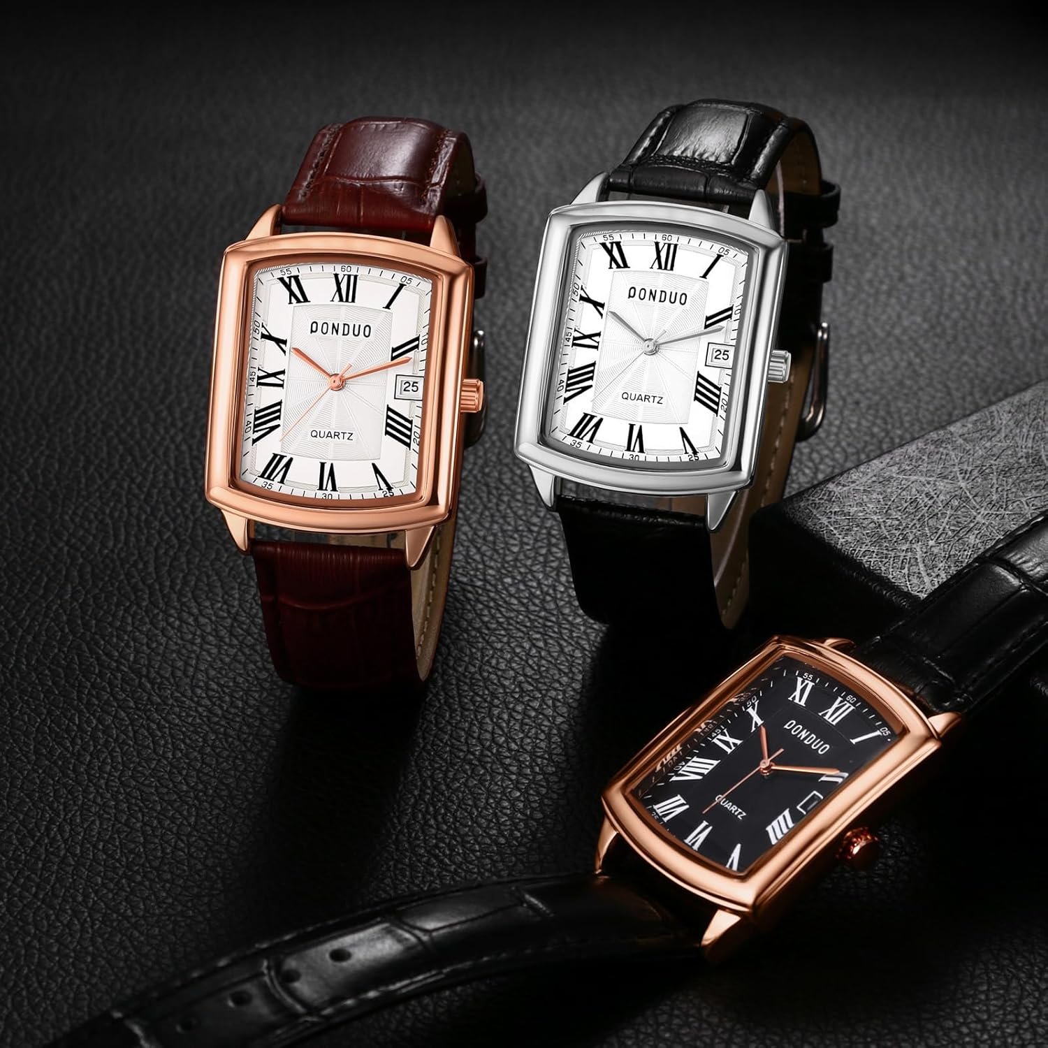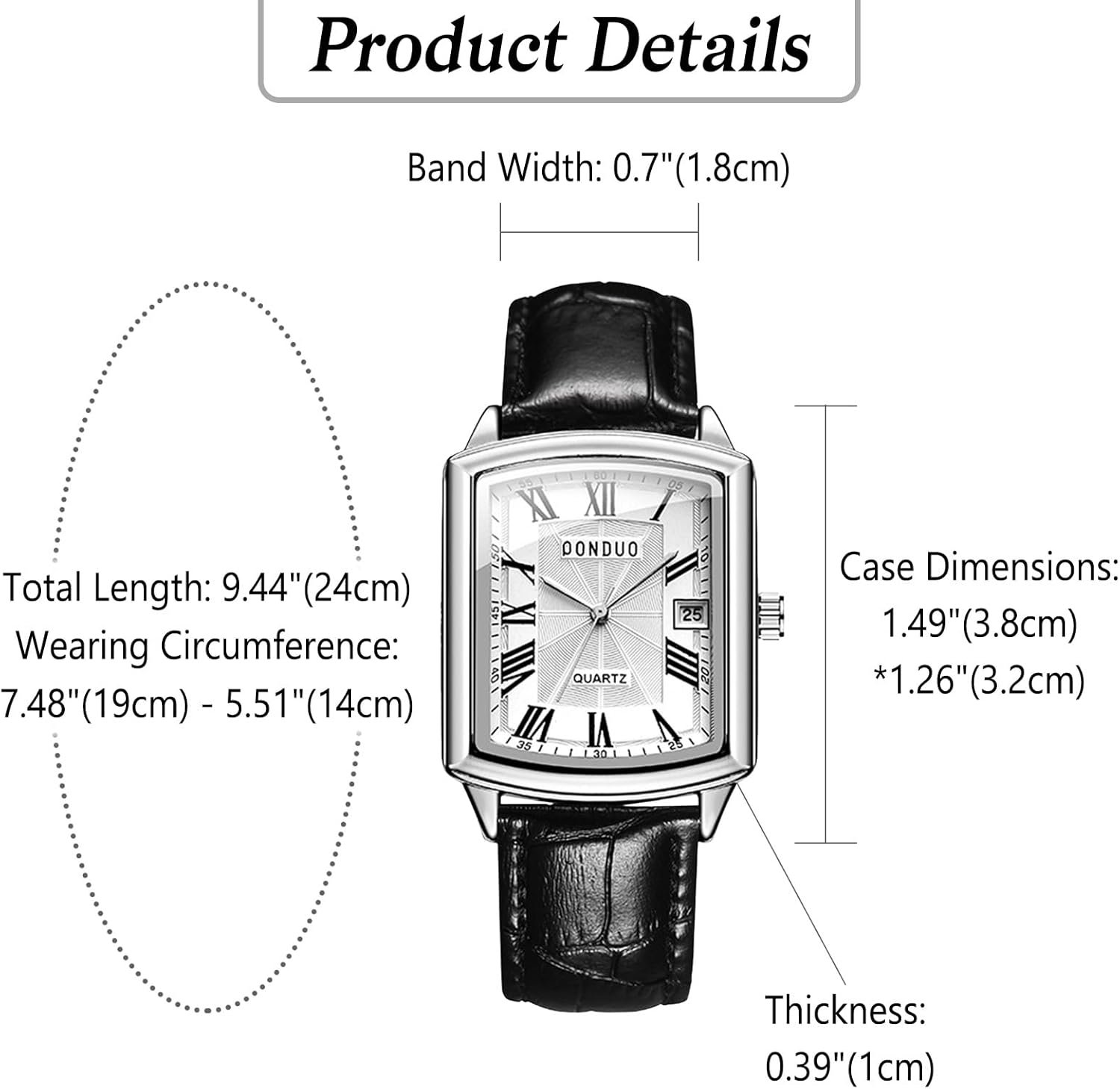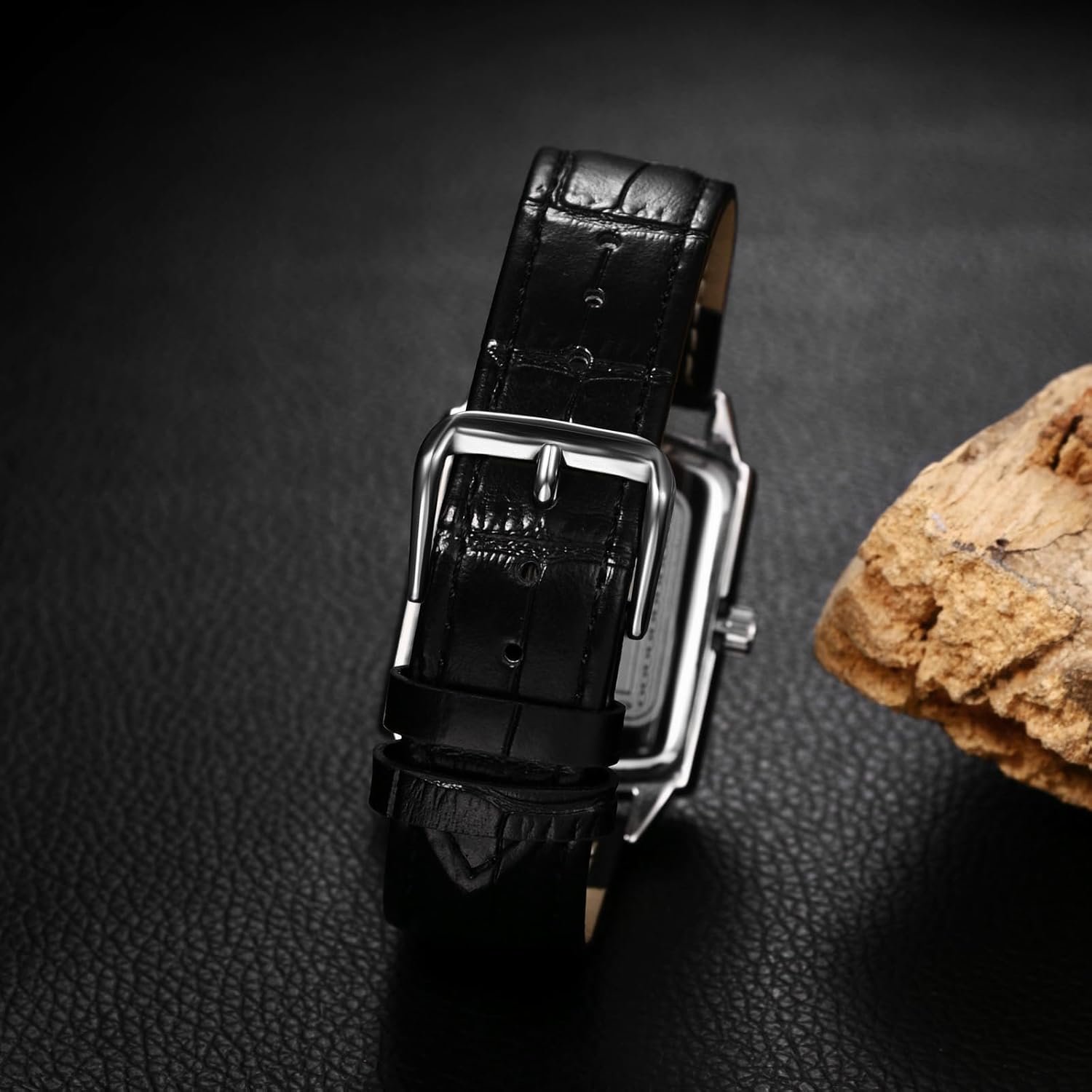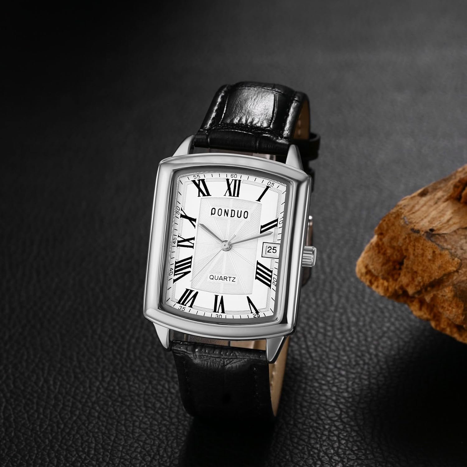 男性は四角い革張りのセイコーウォッチ防水石英革のストラップ長方形ダイヤルマンウォッチローマ数字クールなビジネス毎日ブラック、ホワイト