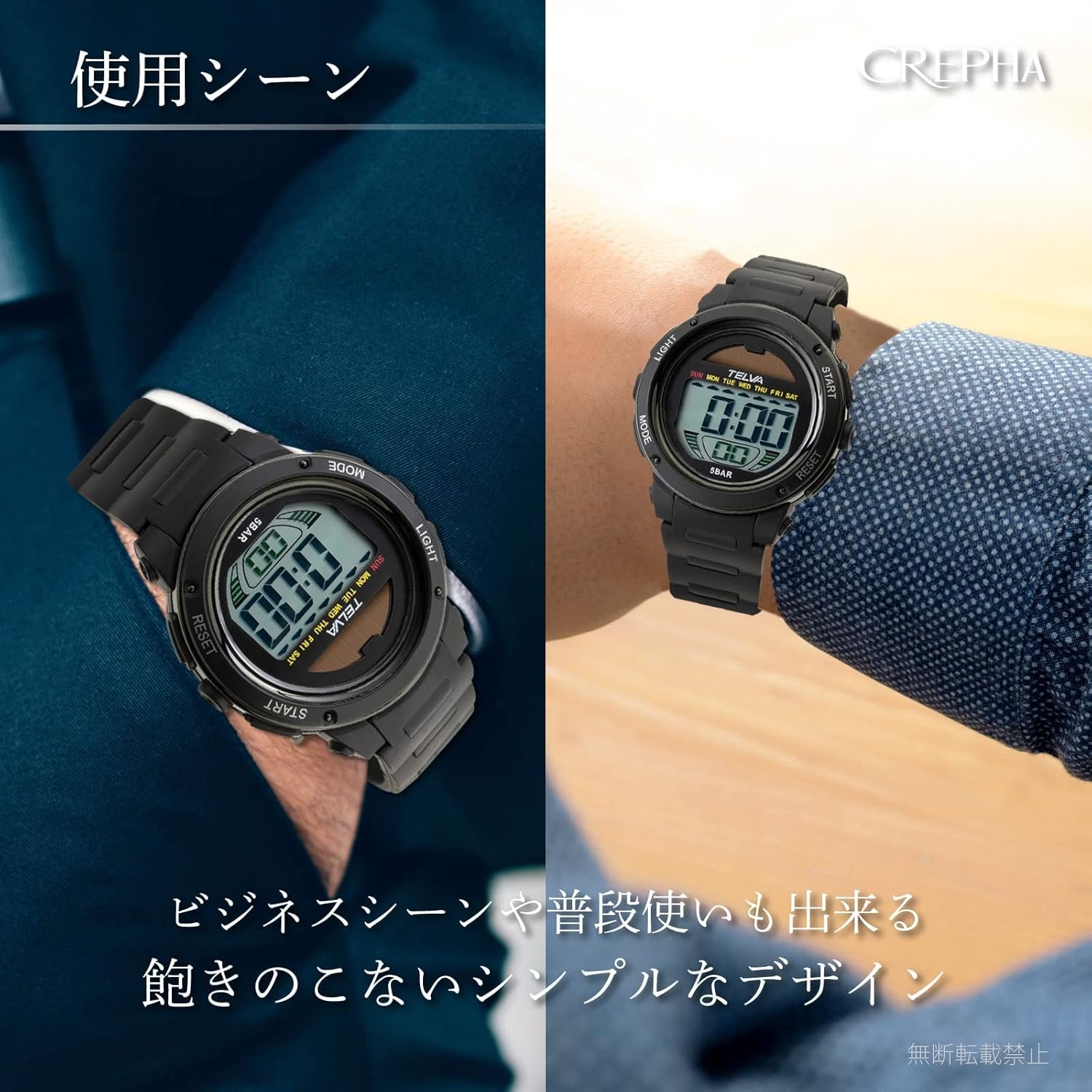 ストップウォッチ、タイマー、ライトなど、さまざまな機能。 4ボタン操作の多用途関数。